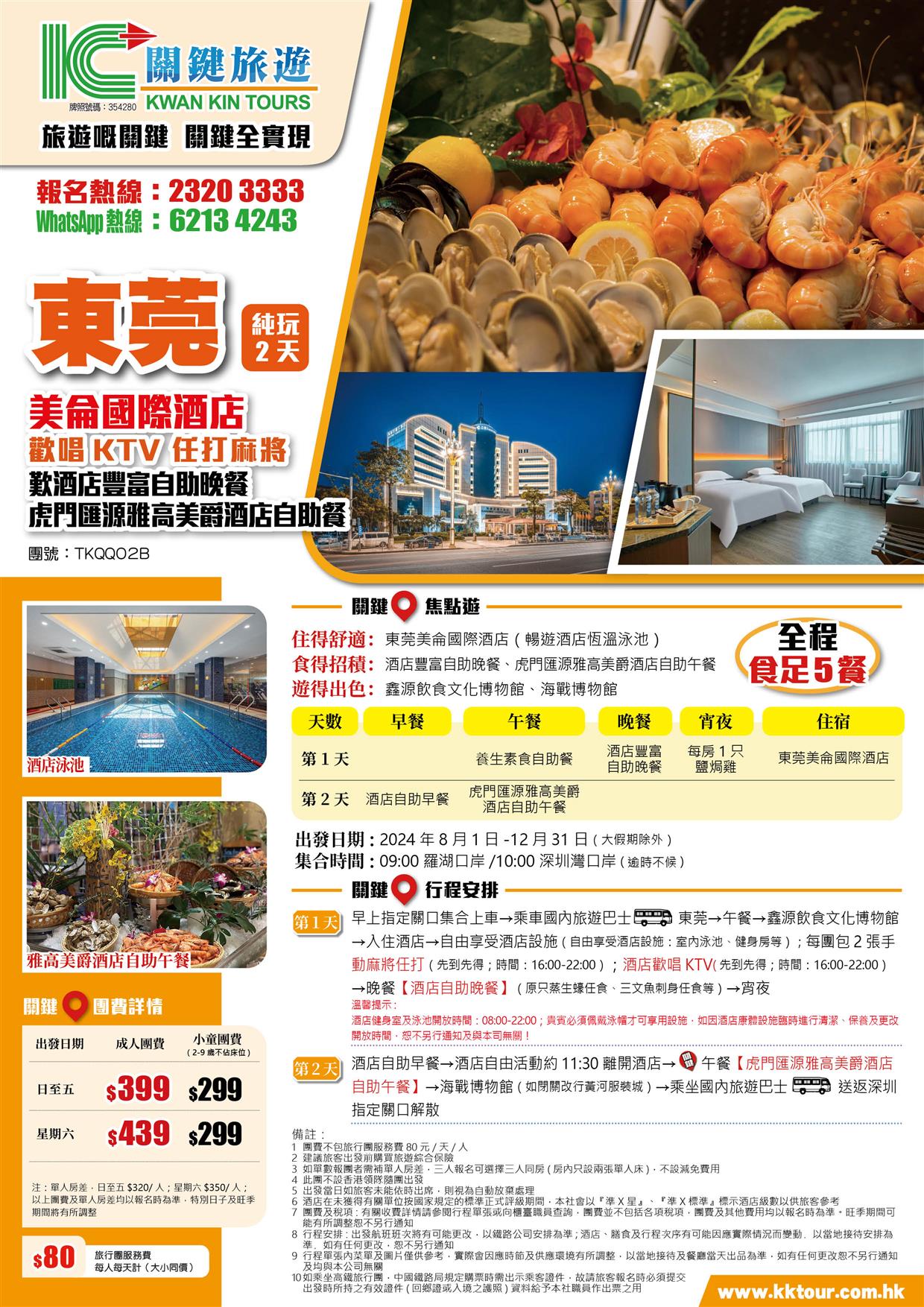 B線-東莞美侖國際酒店(原厚街雲居酒店) 歎酒店自助晚餐、 虎門匯源雅高美爵酒店自助午餐純玩2天