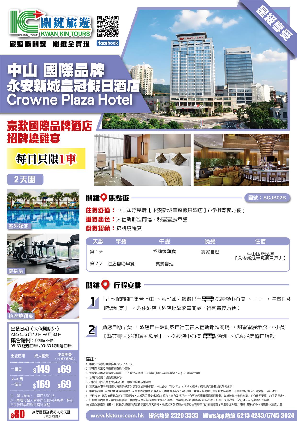 (B線)中山 國際品牌Crowne Plaza Hotel【永安新城皇冠假日酒店】 2天