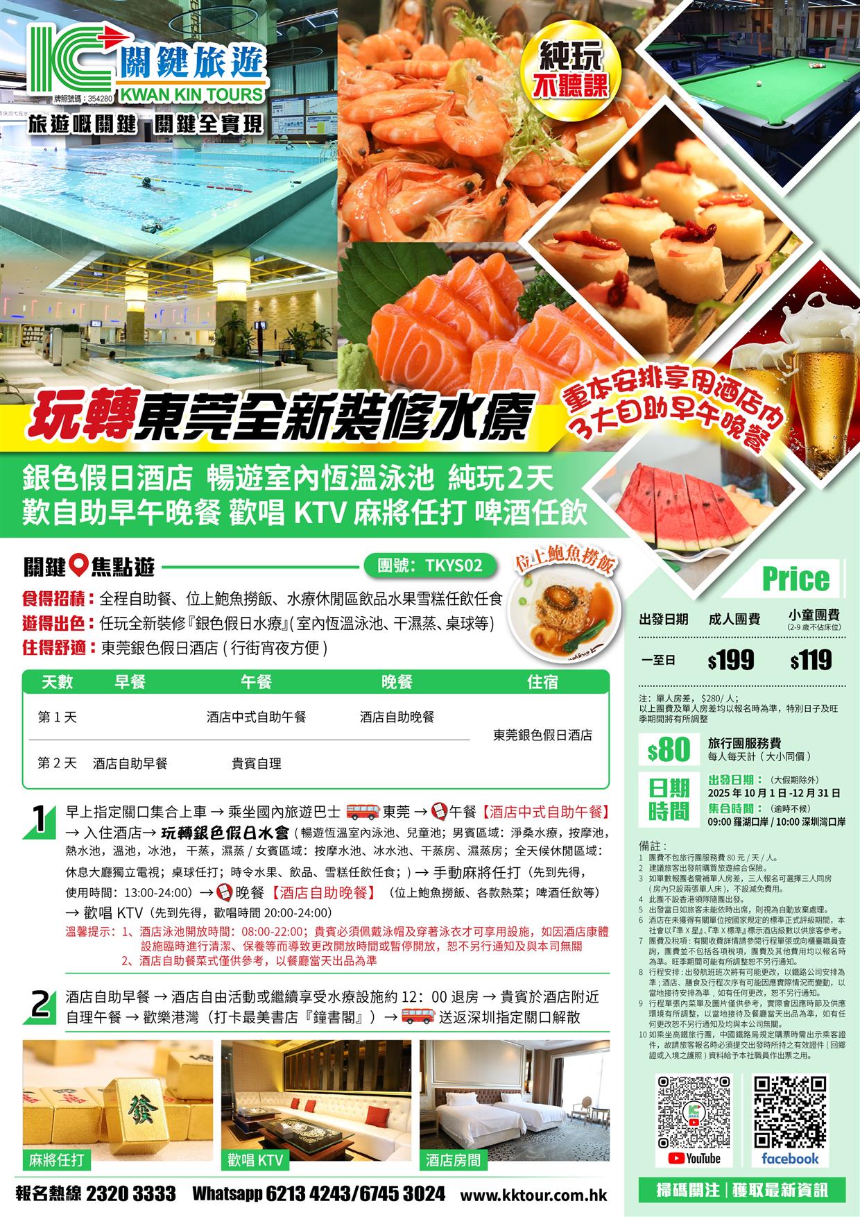東莞全新裝修水療 銀色假日酒店 歎自助早午晚餐 歡唱KTV 麻將任打 恆溫泳池純玩2天