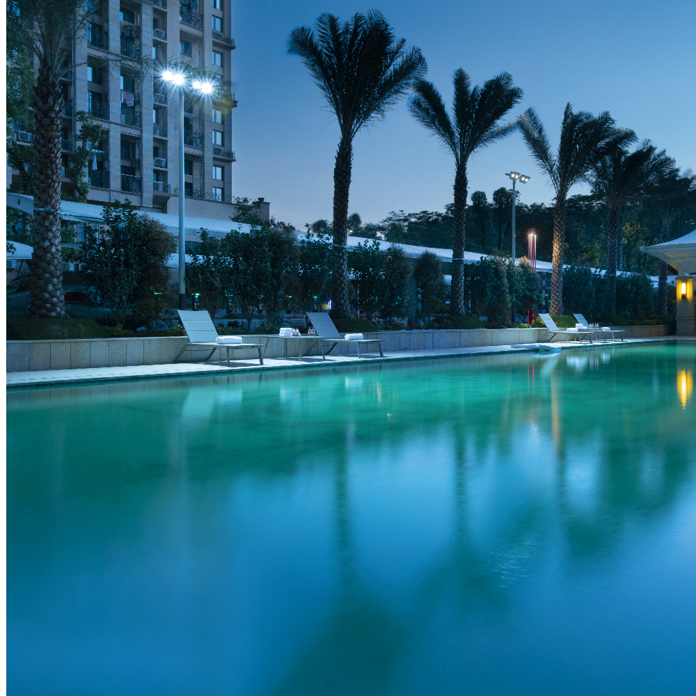 300㎡嘅國際標準戶外泳池,四週綠樹縈繞,擡眸即仰望天空,令你放鬆身心,享受自然嘅愜意寧靜。