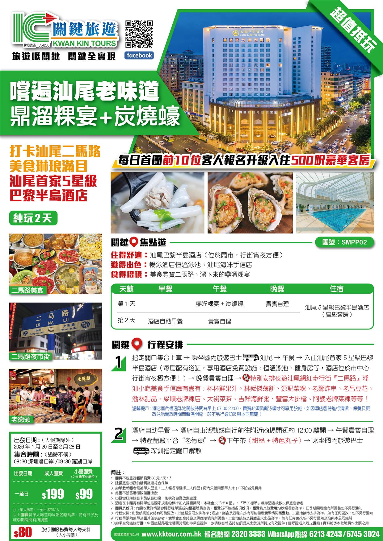 (頭10位提升500呎豪華客房)打卡汕尾二馬路 嘗汕尾老味道 汕尾5星級巴黎半島酒店 美食純玩2天