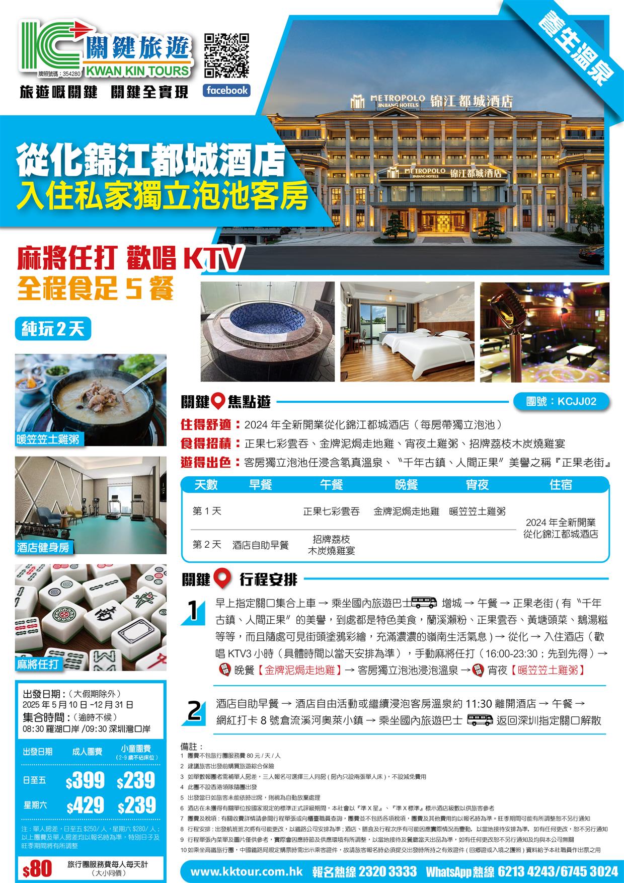 從化錦江都城酒店 入住私家獨立泡池客房 麻將任打 歡唱KTV 全程食足5餐純玩2天