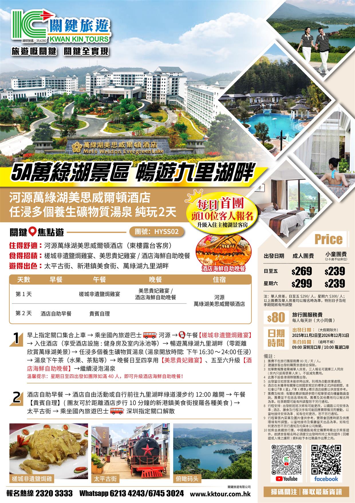 (首團頭10位升級主樓湖景客房)河源萬綠湖美思威爾頓酒店(任浸湯泉) 暢遊九里湖畔 純玩2天