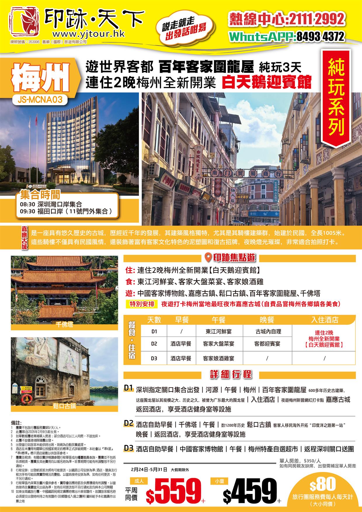 遊世界客都 百年客家圍龍屋 新晉網紅打卡點嘉應古城 連住2晚梅州全新開業【白天鵝迎賓館】純玩3天