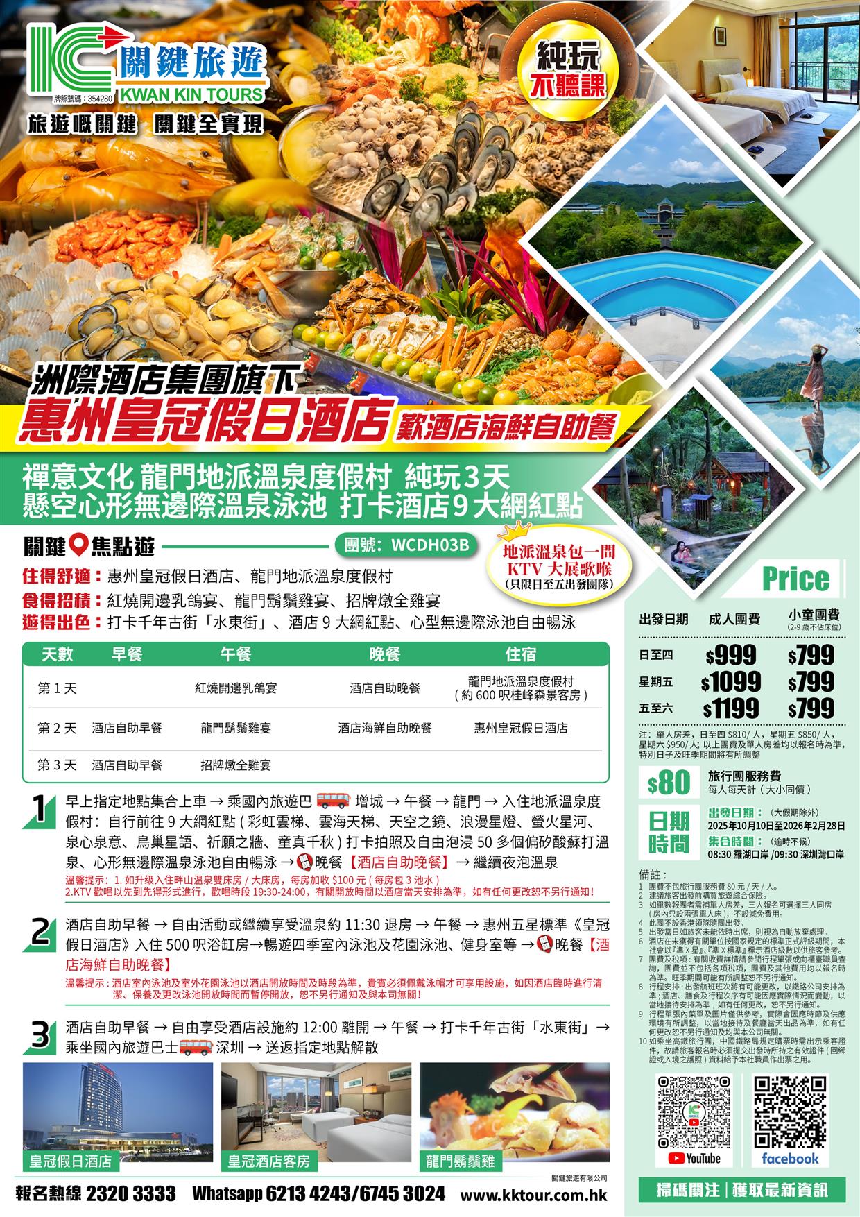 龍門地派溫泉度假村+惠州皇冠假日酒店 豪嘆2晚酒店海鮮自助餐 打卡酒店9大網紅點 純玩3天