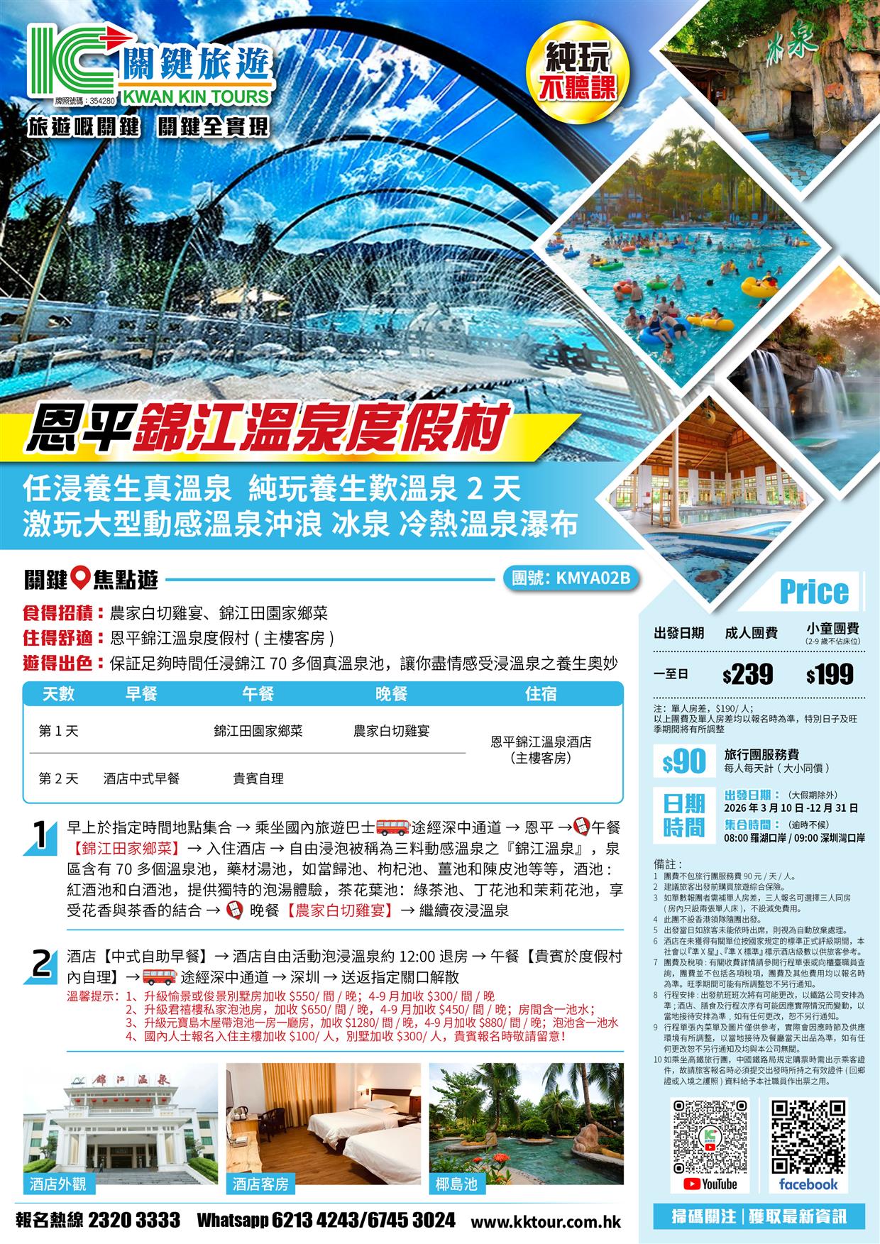 恩平 錦江溫泉度假村 任浸三料動感溫泉 養生真溫泉純玩2天