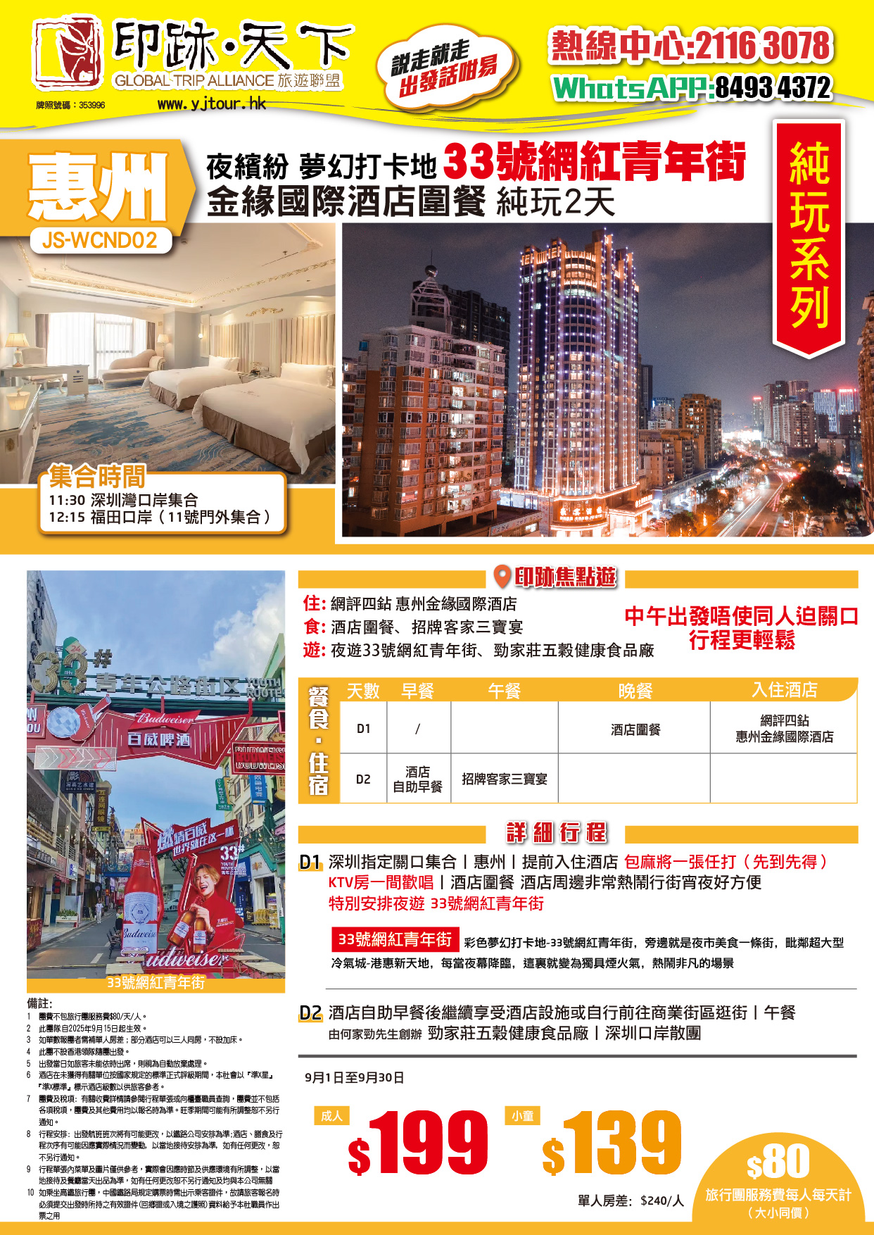 【夜繽紛】中午出發 惠州 彩色夢幻打卡-33號網紅青年街【惠州金緣國際酒店】 純玩2天