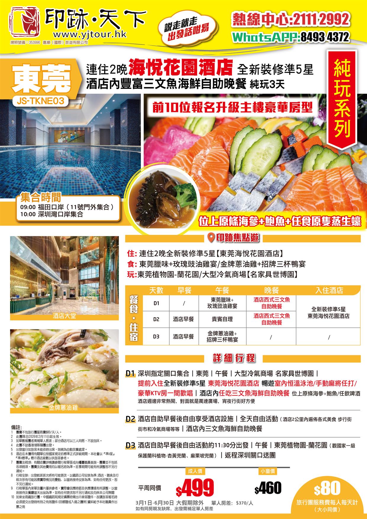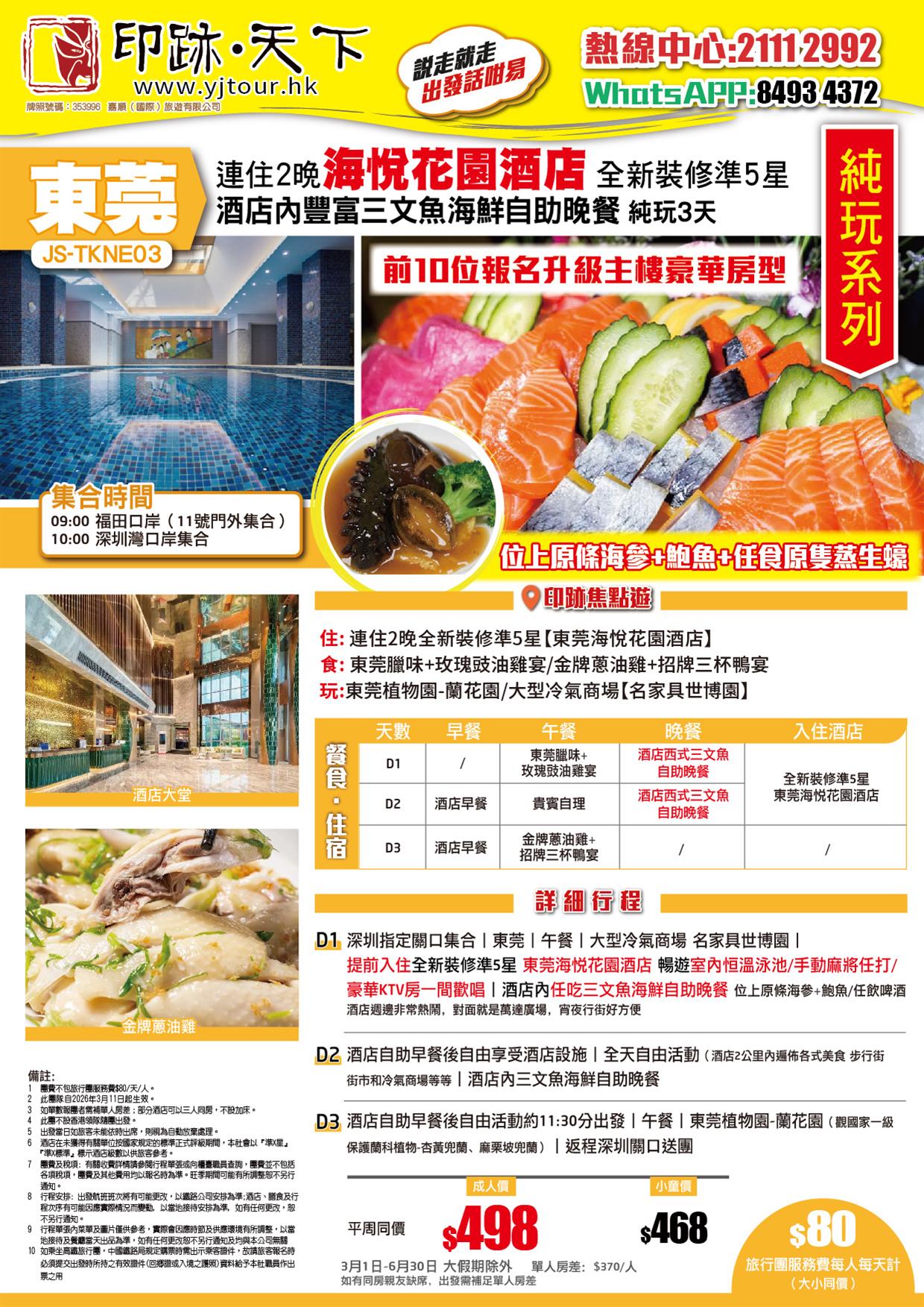 東莞 連住兩晚全新裝修准五星【東莞海悅花園酒店】豐富三文魚海鮮自助晚餐 大型商場名家具世博園純玩3天