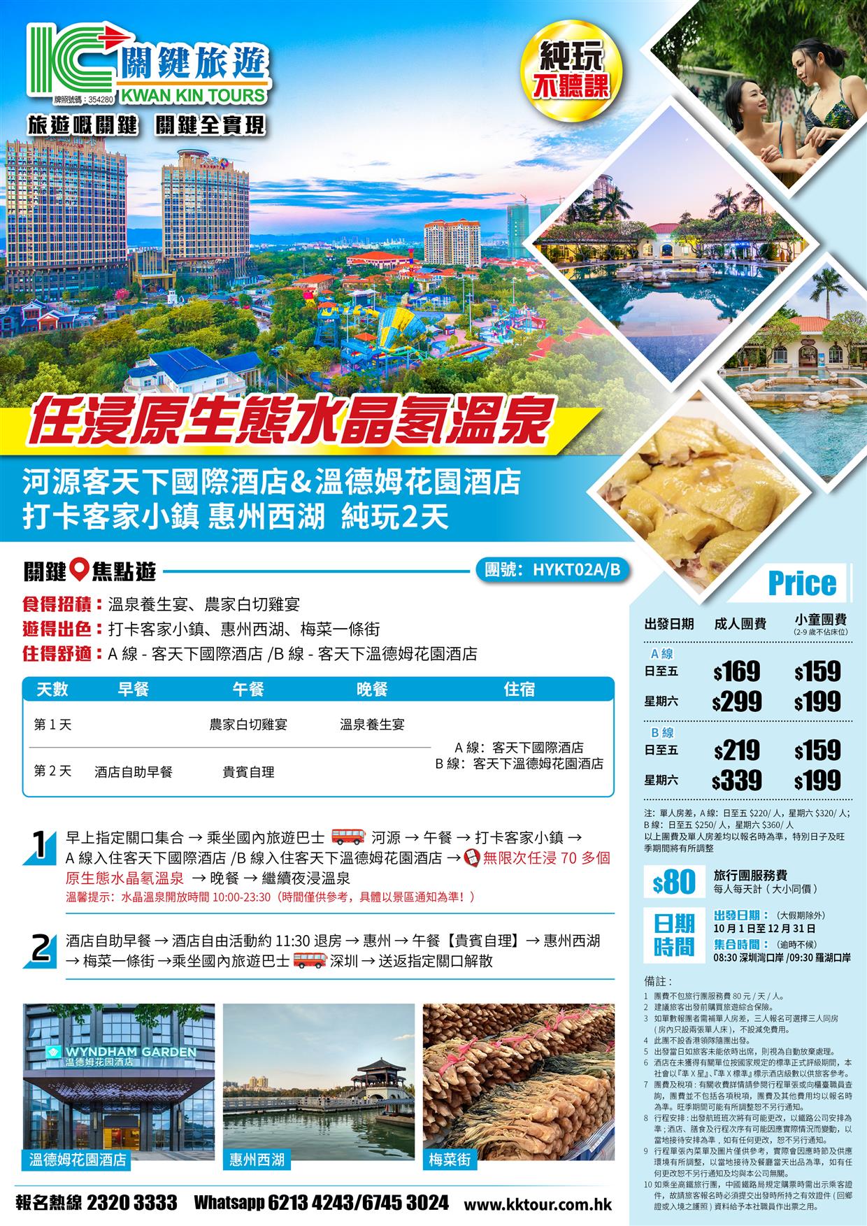 B線-河源客天下溫德姆花園酒店 任浸原生態水晶氡溫泉 惠州西湖 梅菜一條街 純玩2天