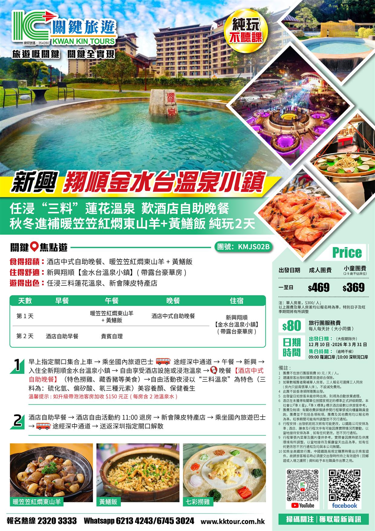 B線-新興翔順金水台溫泉小鎮 任浸三料蓮花溫泉 酒店自助晚餐 秋冬滋補紅燜東山羊純玩2天