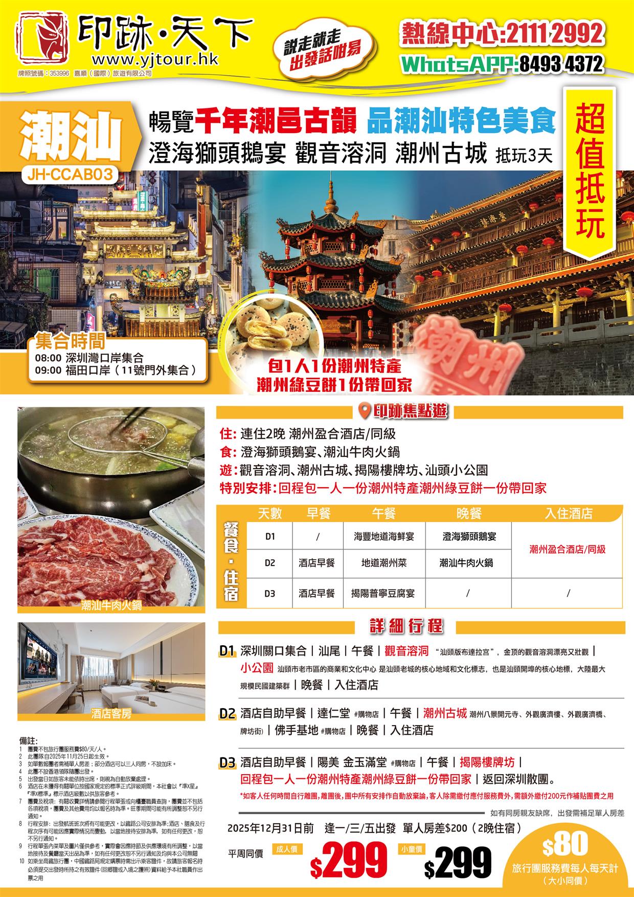 潮汕 暢覽千年潮邑古韻 食潮汕牛肉火鍋 連住兩晚潮州盈合酒店/同級 抵玩3天