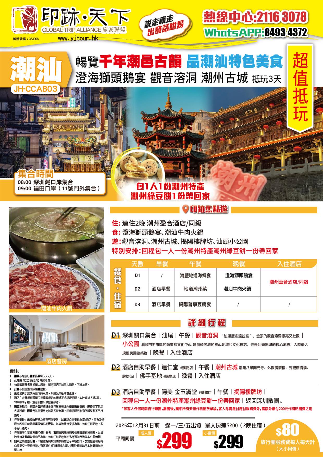 特別安排:回程包一人一份潮州特產潮州綠豆餅一份帶回家