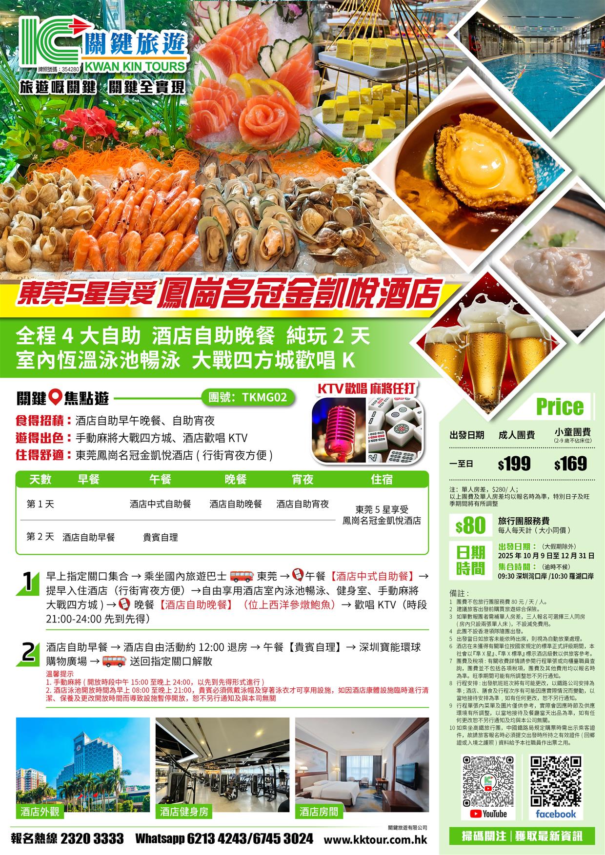 (健身房及泳池暫停開放)東莞鳳崗名冠金凱悅酒店 全程4大自助 大戰四方城歡唱K純玩2天
