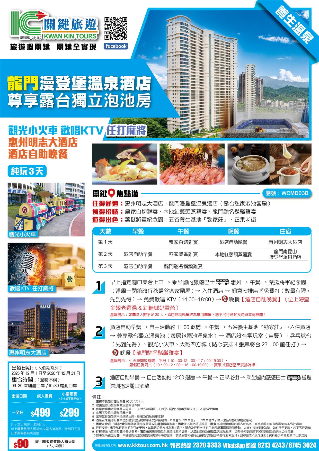 B線-南昆山漫登堡溫泉酒店(尊享露台獨立泡池房)惠州明志大酒店 酒店自助晚餐 純玩3天