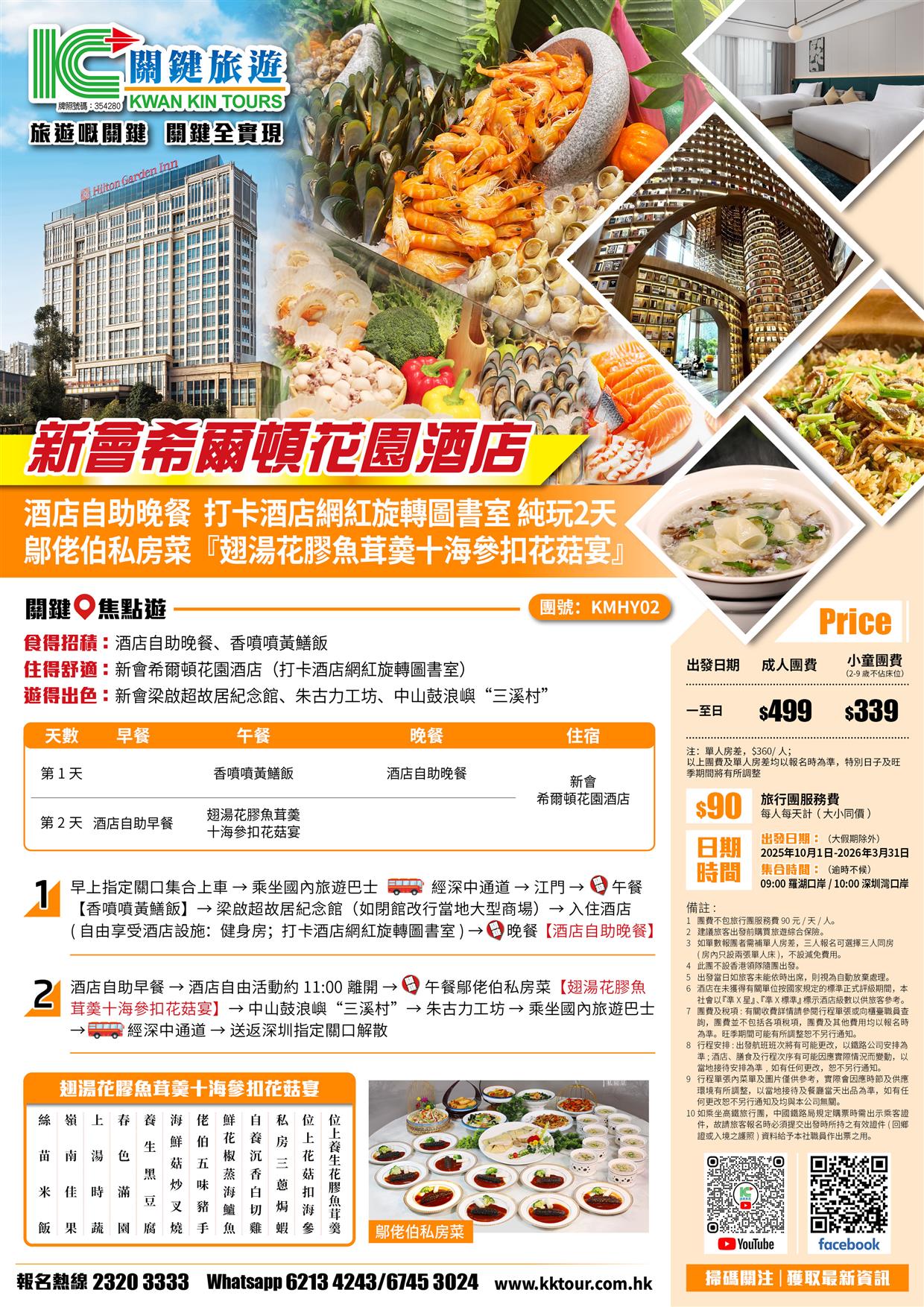 新會希爾頓花園酒店 歎酒店自助晚餐 鄔佬伯私房菜『翅湯花膠魚茸羮十海參扣花菇宴』純玩2天