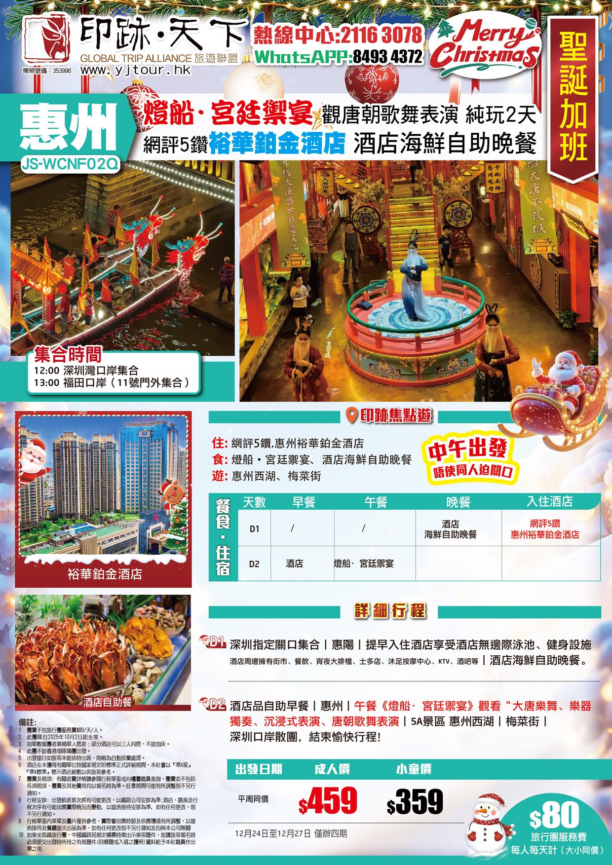 聖誕加班線 惠州 燈船宮廷禦宴 觀看唐朝歌舞表演 入住網評5鑽.裕華鉑金酒店 海鮮自助晚餐 純玩2天