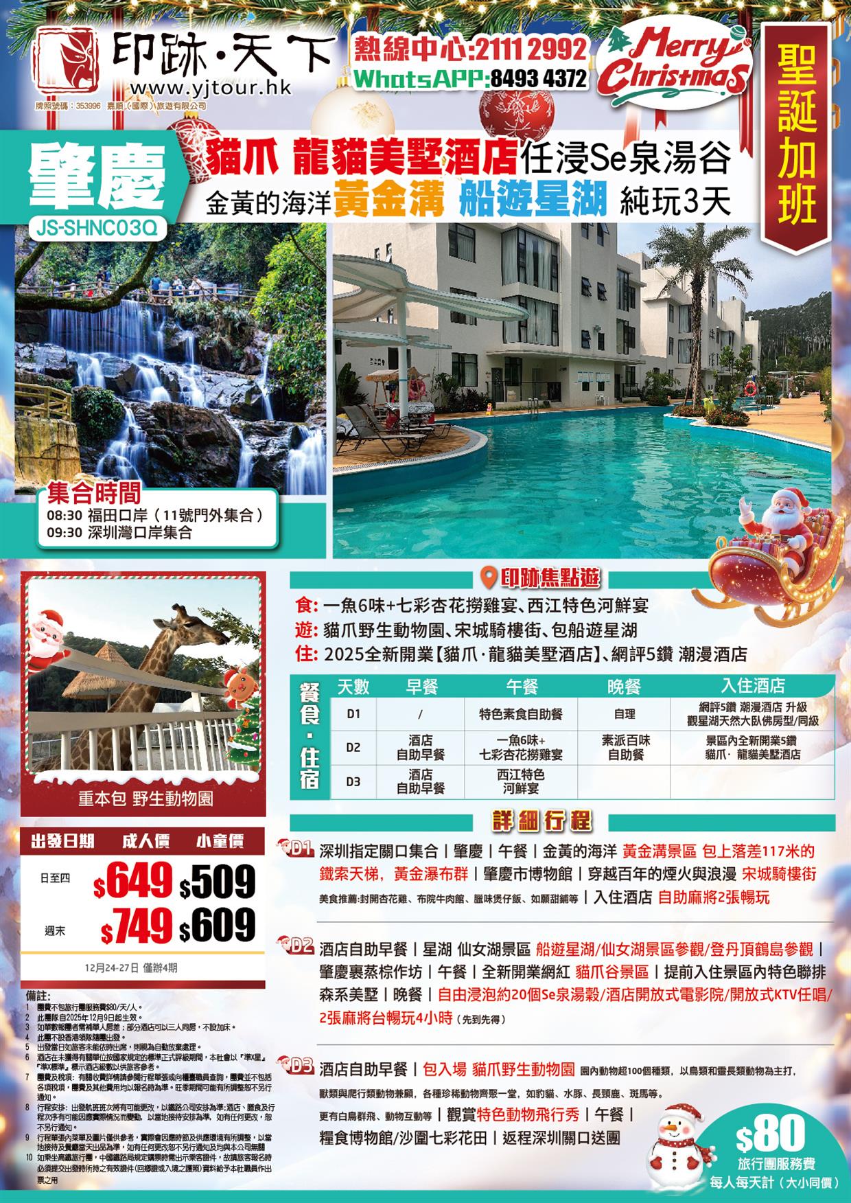 【聖誕加班線】肇慶 黃金溝景區 船遊星湖 全新開業貓爪·龍貓美墅酒店 任浸Se泉湯穀 純玩3天
