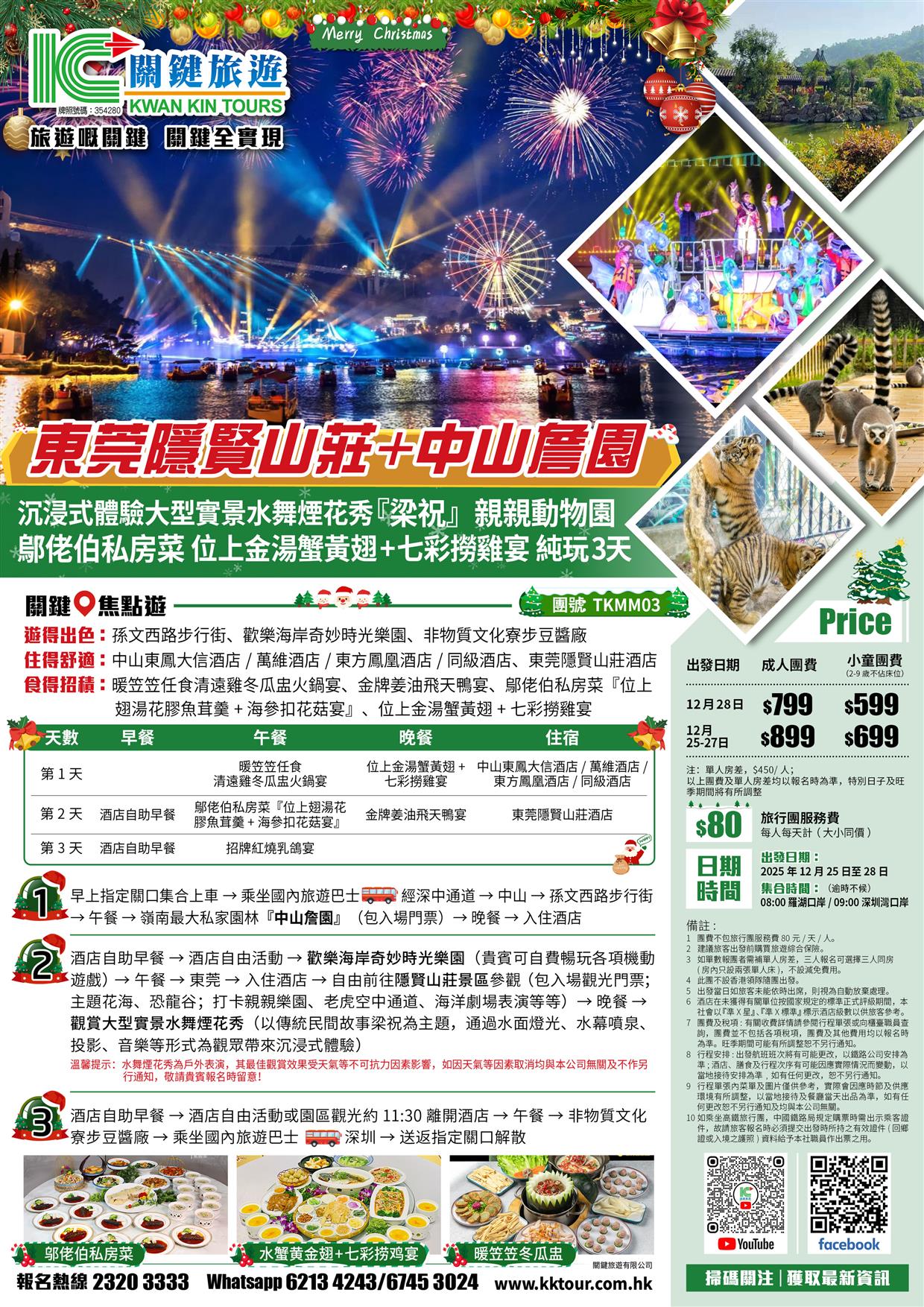 (聖誕加班)東莞隱賢山莊沉浸式體驗水舞煙花秀『梁祝』、嶺南最大私家園林『中山詹園』美食純玩3天