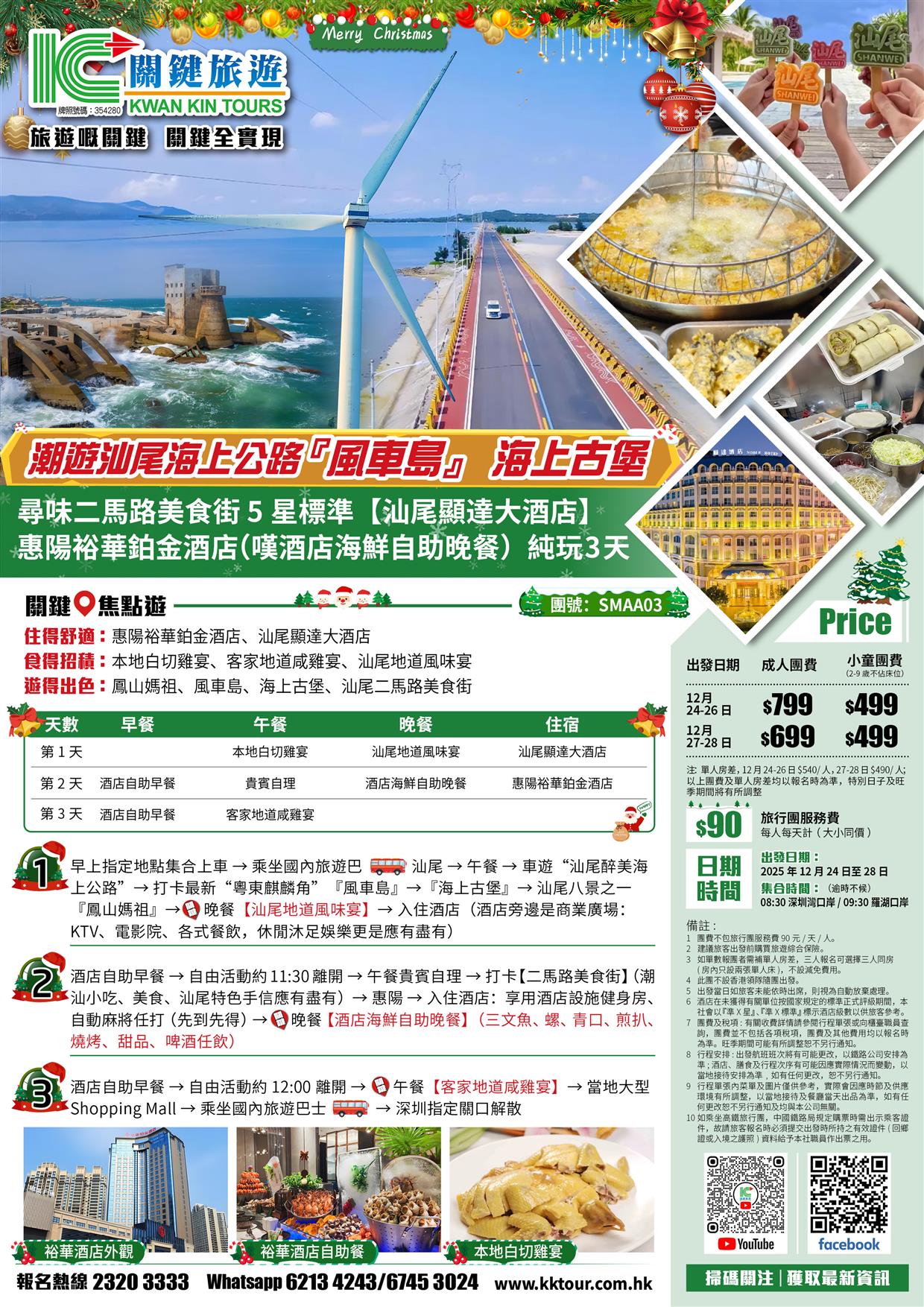 (聖誕加班)潮遊汕尾海上公路『風車島』、海上古堡 汕尾顯達大酒店+惠陽裕華鉑金酒店 純玩3天