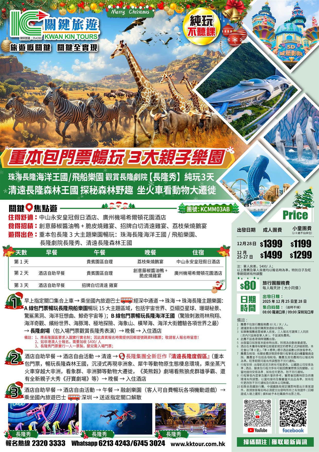 (聖誕加班)B線-珠海長隆海洋王國、觀賞長隆劇院【長隆秀】、清遠長隆森林王國 暢玩3大樂園純玩3天