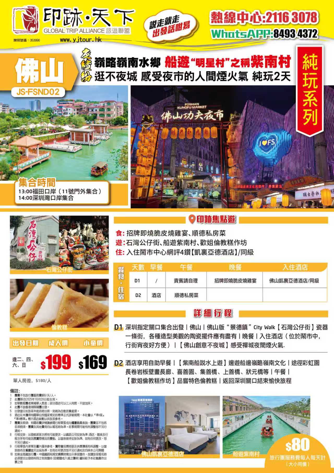 夜繽紛 佛山 嶺略嶺南水鄉 船遊 明星村 之稱紫南村 逛不夜城 感受夜市的人間煙火氣 純玩 2天