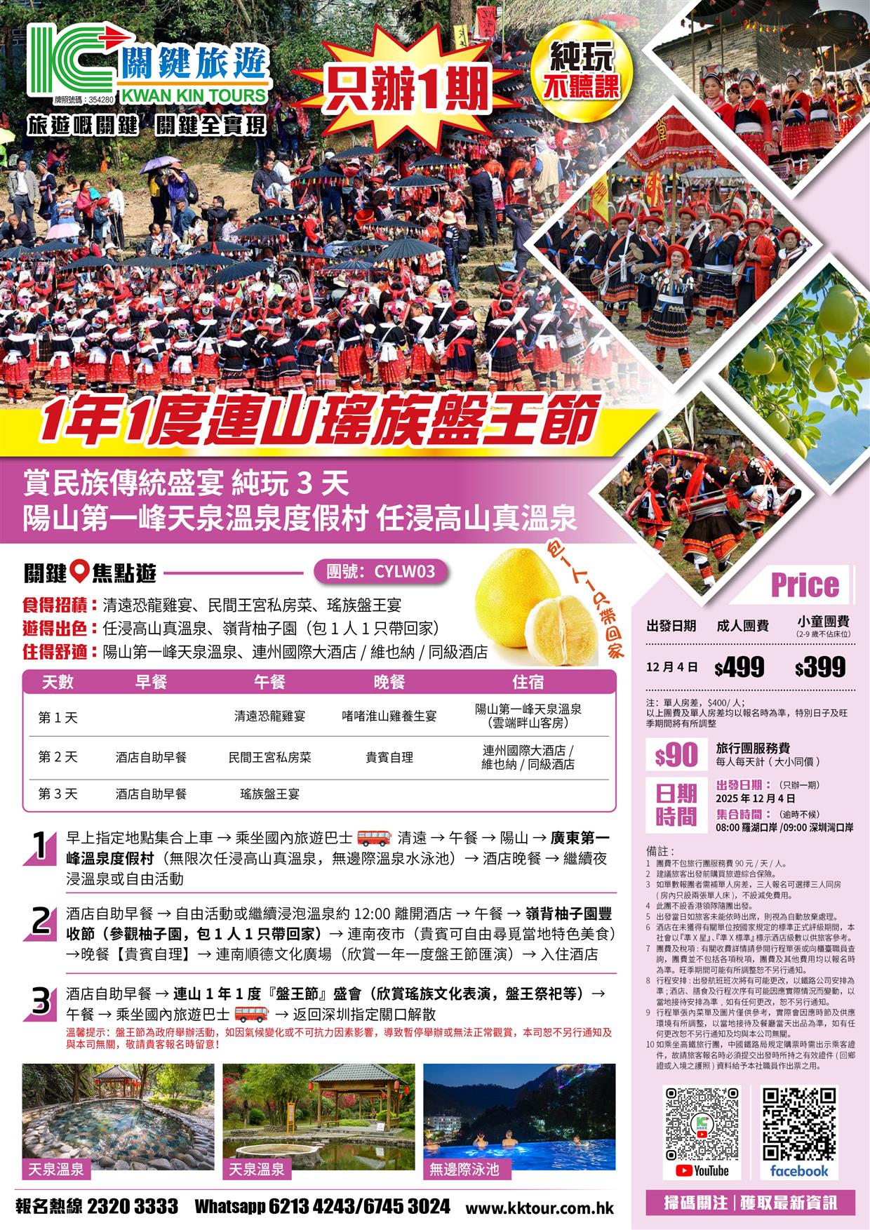 1年1度連山瑤族盤王節 賞民俗傳統盛宴 陽山天泉溫泉度假村 任浸高山溫泉 純玩3天
