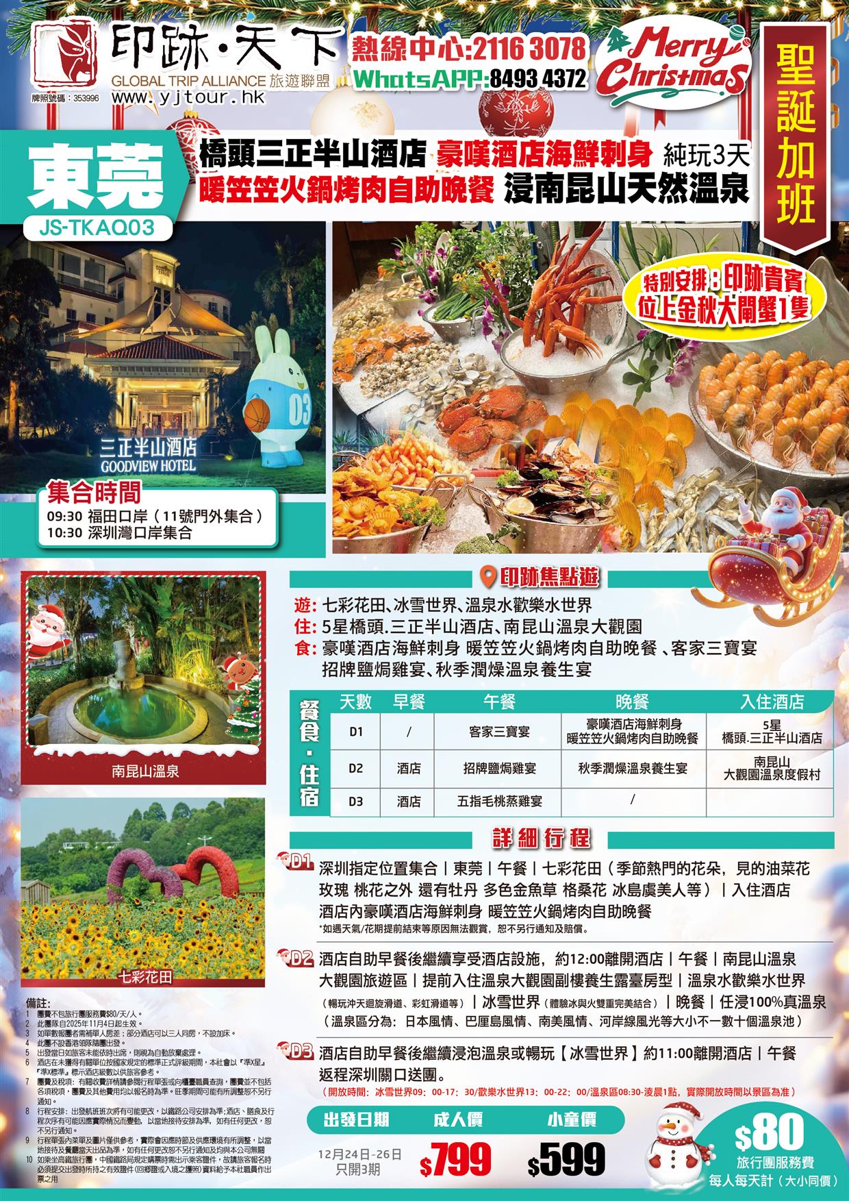 聖誕加班線:東莞 橋頭三正半山酒店 豪嘆海鮮刺身+火鍋烤肉自助晚餐 浸南昆山天然溫泉 純玩3天