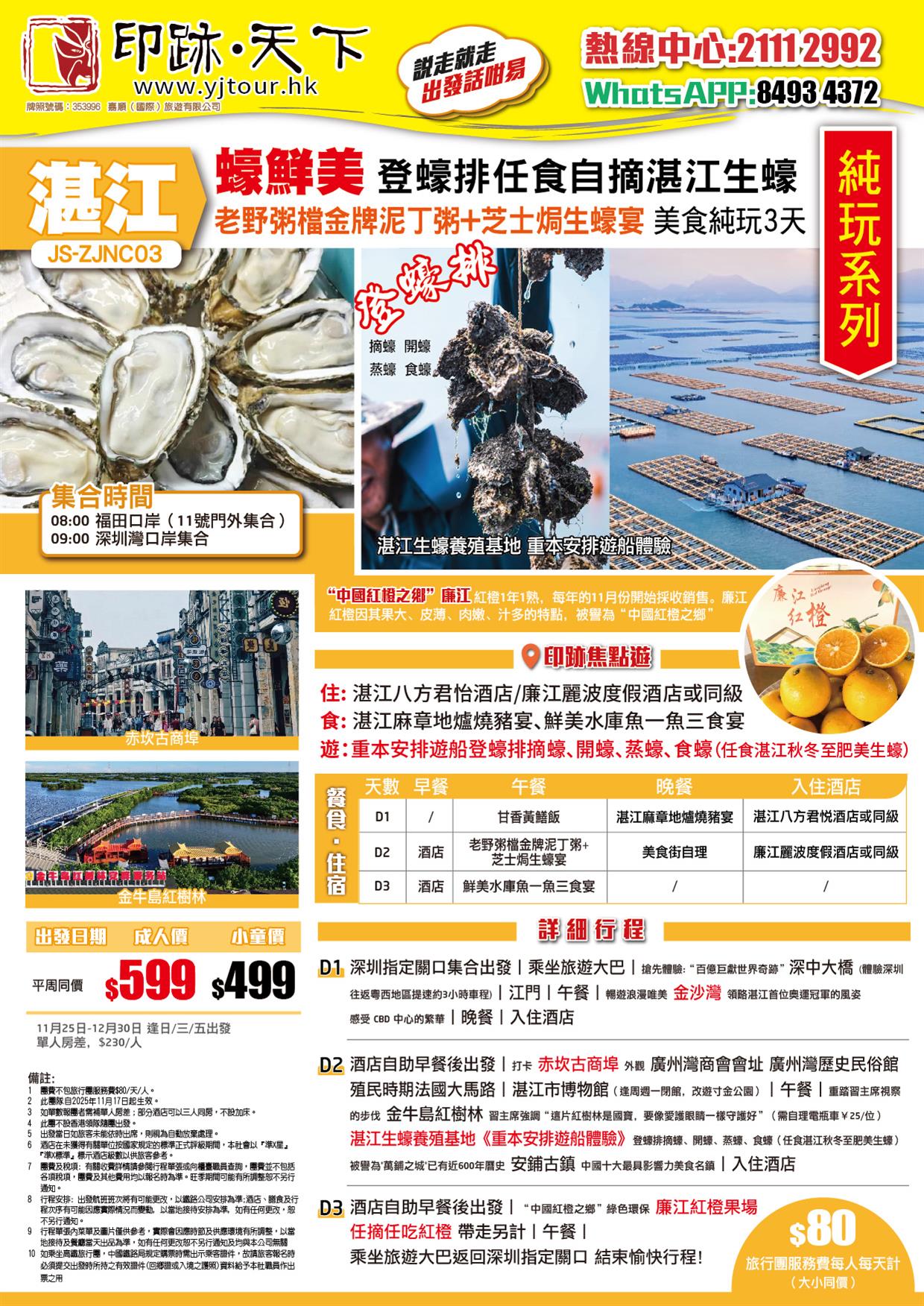 玩:重本安排遊船登蠔排摘蠔、開蠔、蒸蠔、食蠔(任食湛江秋冬至肥美生蠔)