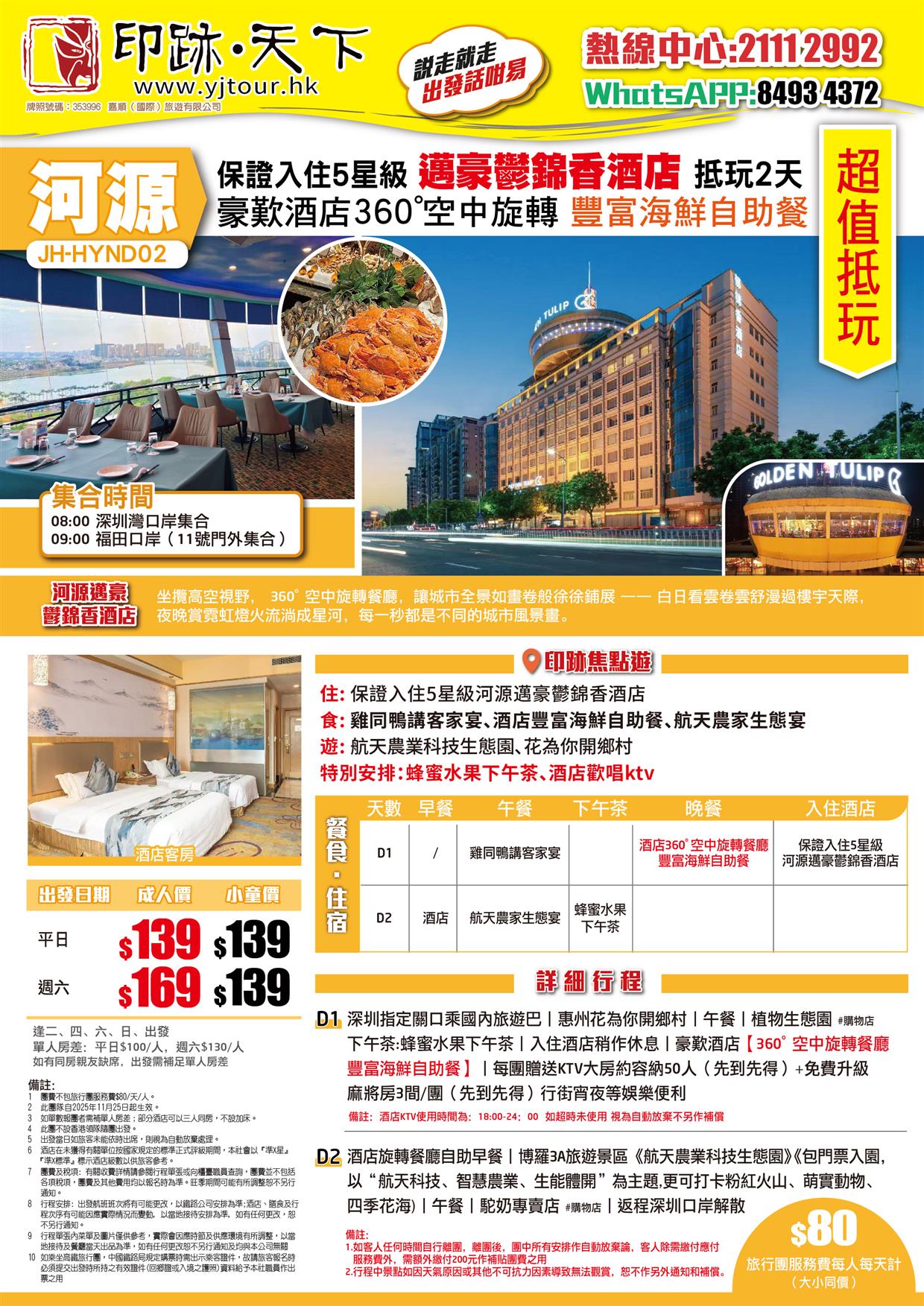 河源 保證入住5星級 邁豪鬱錦香酒店 豪歎酒店360°空中旋轉【豐富海鮮自助餐】抵玩2天