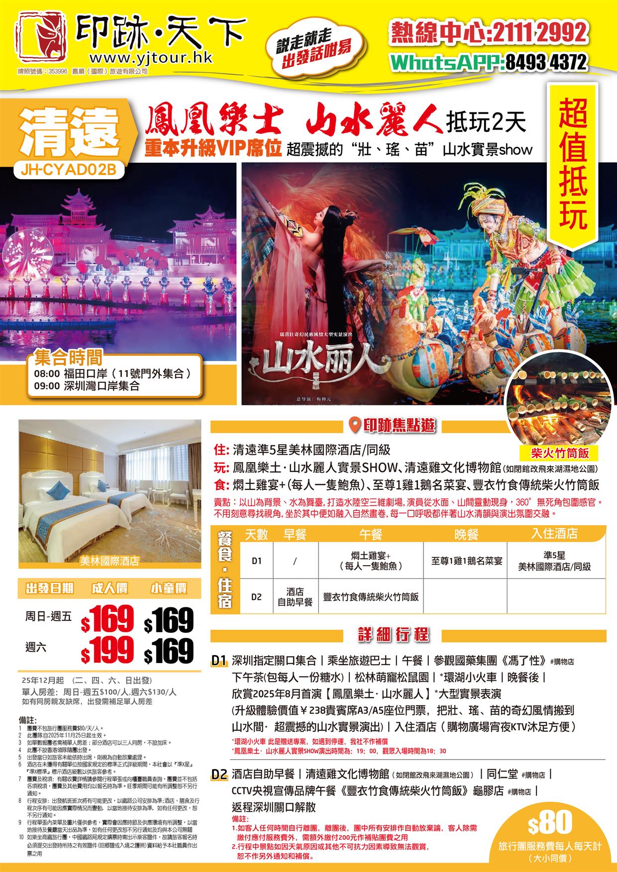 清遠 【鳳凰樂土 山水麗人】超震撼的【壯、瑤、苗】山水實景SHOW 住準五星美林國際酒店/同級 2天