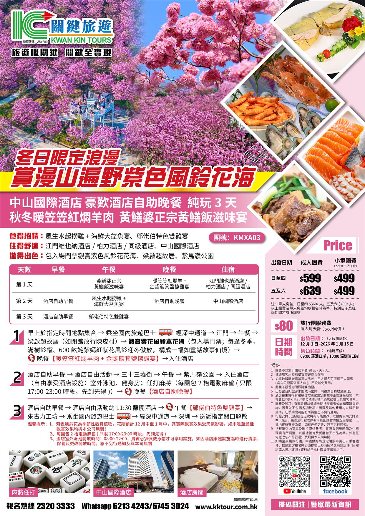江門賞漫山遍野紫色風鈴花海 中山國際酒店 豪歎酒店自助晚餐純玩3天