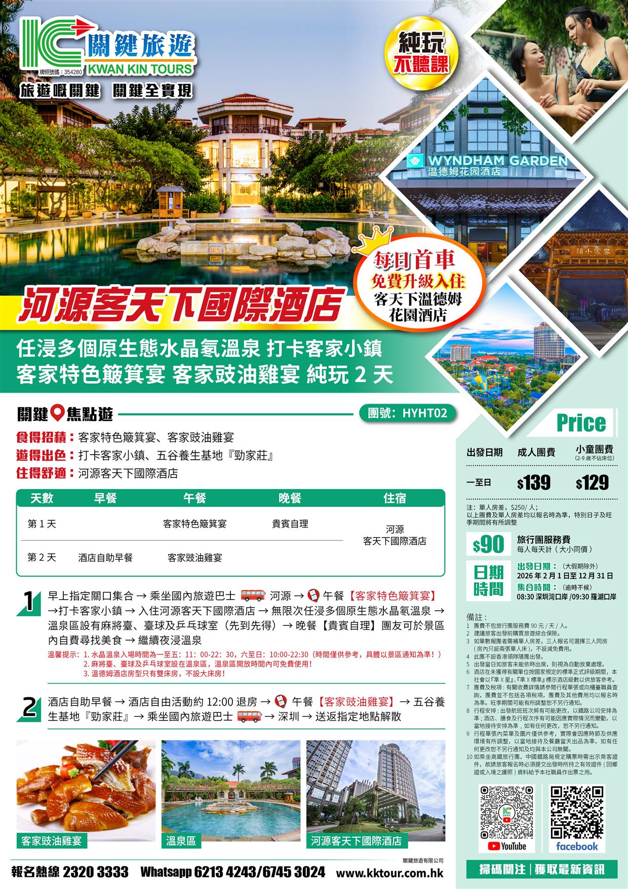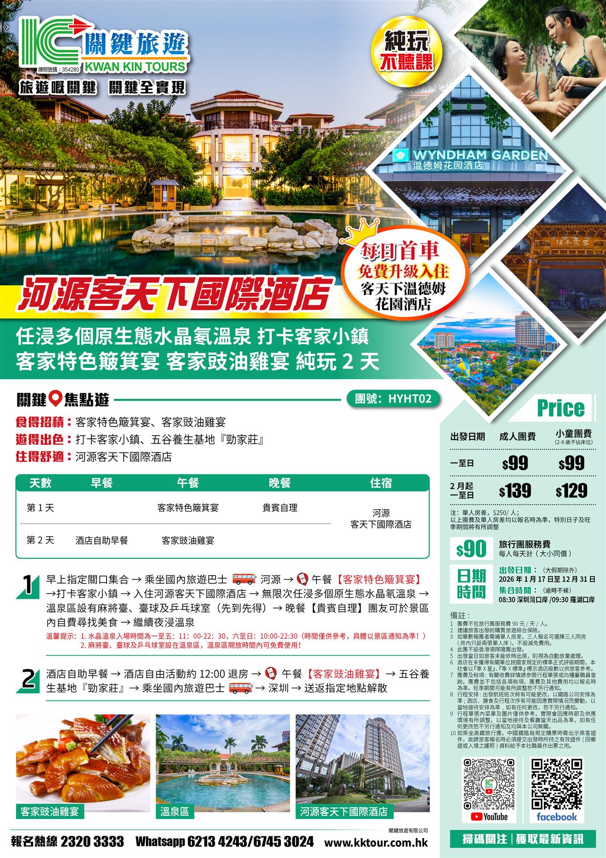 河源客天下國際酒店 任浸多個原生態水晶氡溫泉 打卡客家小鎮 純玩2天