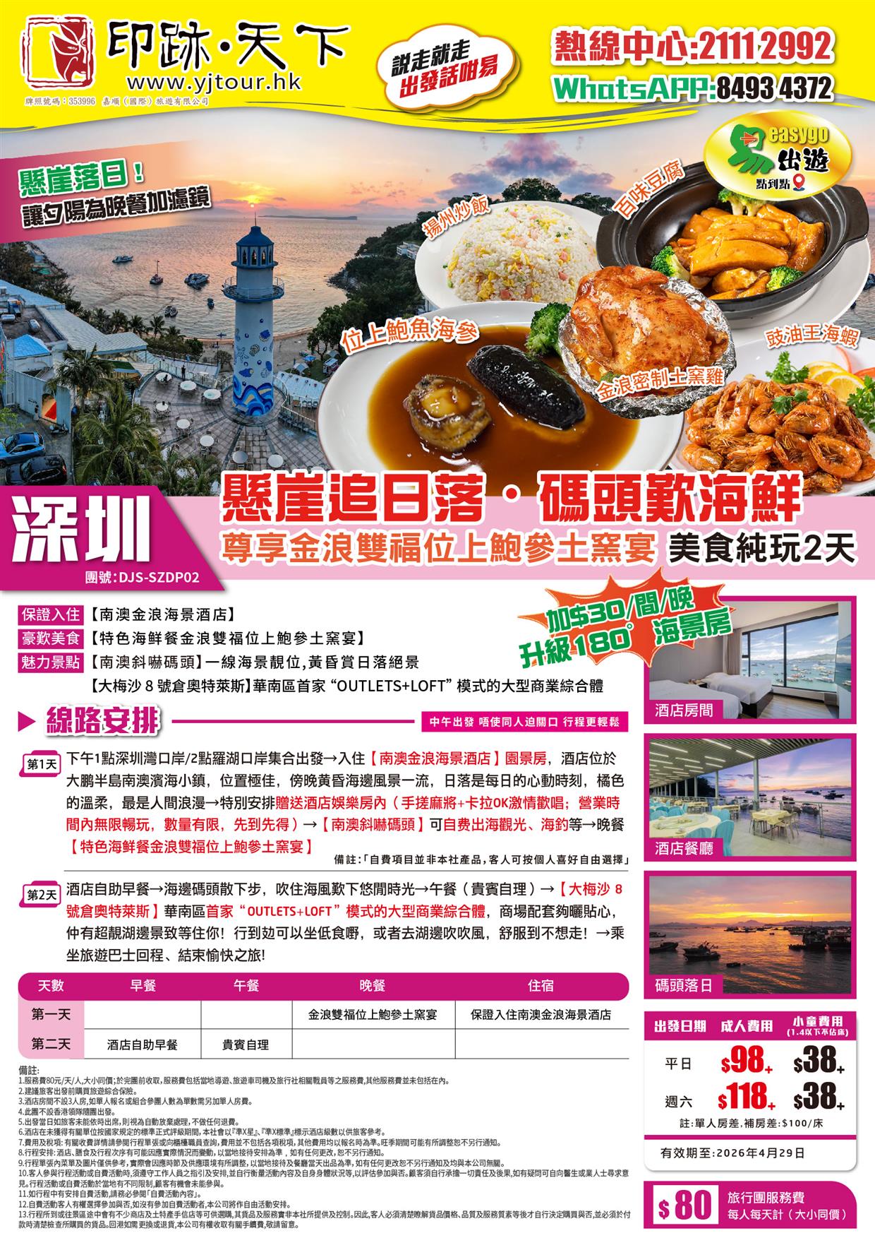 【Easy Go,10人保證成團】懸崖追日落·碼頭歎海鮮【尊享金浪雙福位上鮑參土窯宴 美食純玩2天)