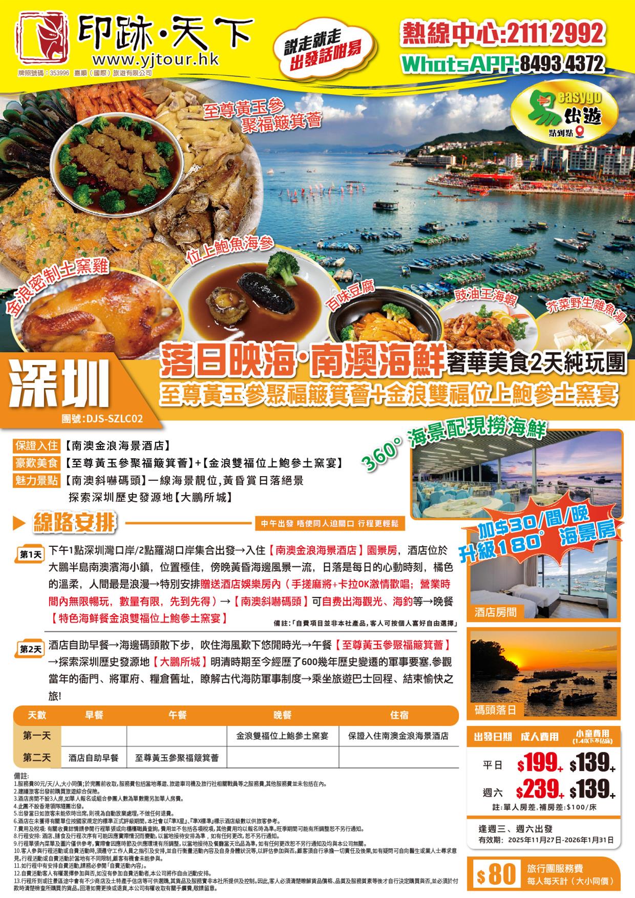 【Easy Go,10人保證成團】落日映海·南澳海鮮 「黃玉參聚福簸箕薈」+「位上鮑參土窯」純玩2天