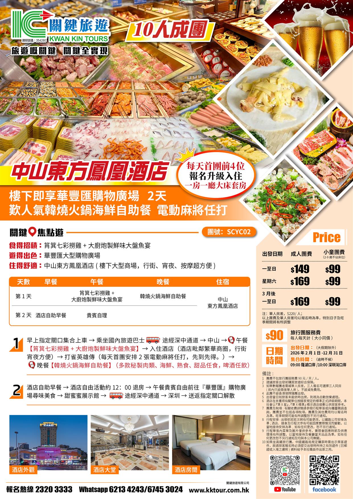 中山東方鳳凰酒店 歎人氣韓燒火鍋海鮮自助餐 電動麻將任打2天