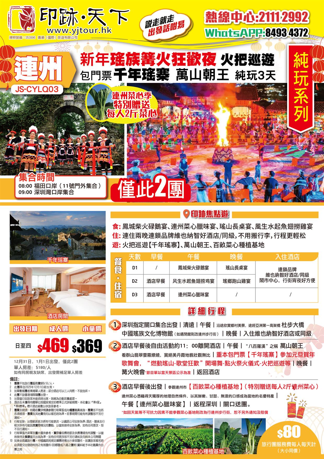 新年瑤族篝火狂歡夜 火把巡遊 重本包門票【千年瑤寨】 連州攝影聖地萬山朝王 品嘗瑤山長桌宴 純玩3天