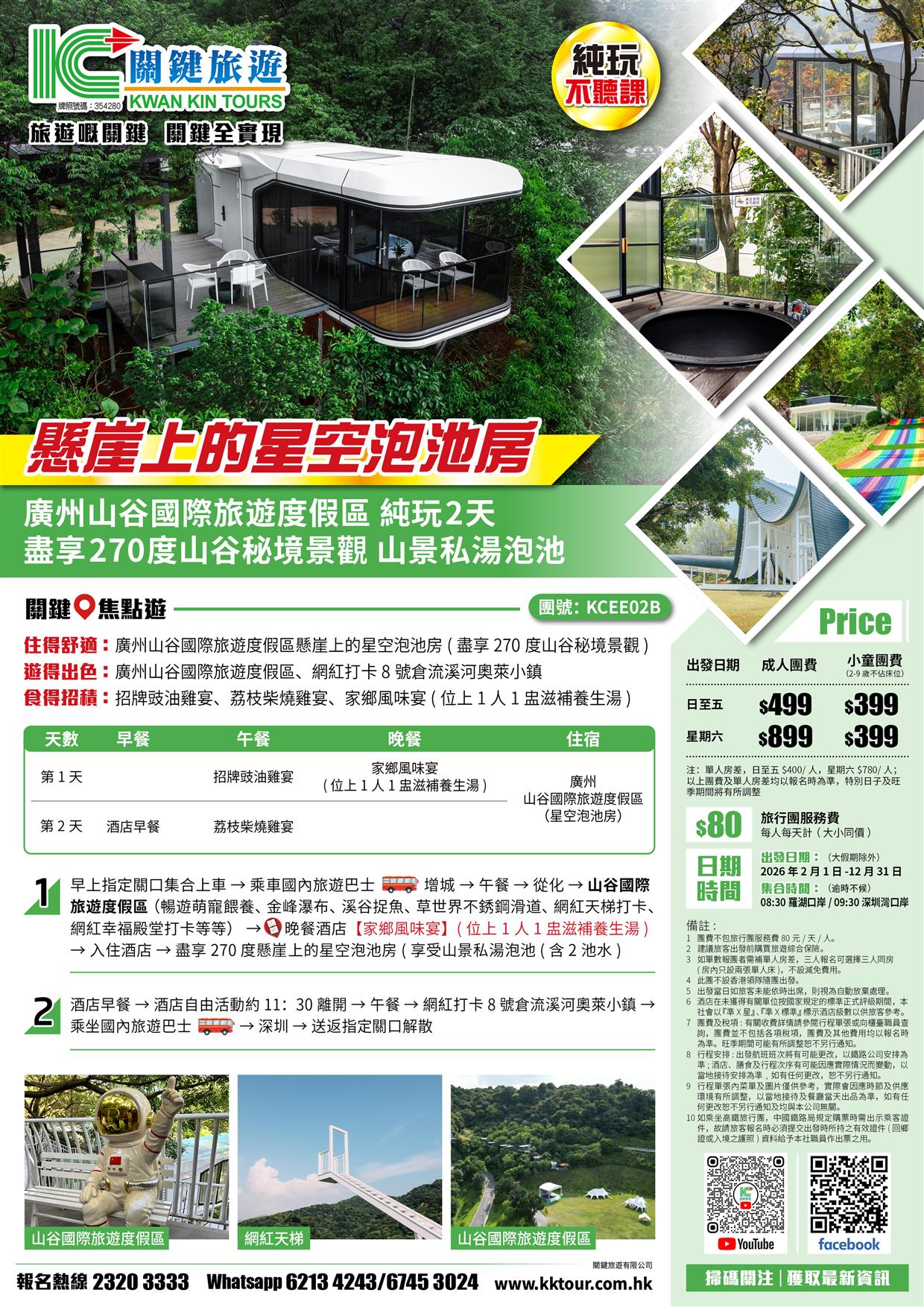 B線-廣州山谷國際旅遊度假區 懸崖上的星空泡池房純玩2天
