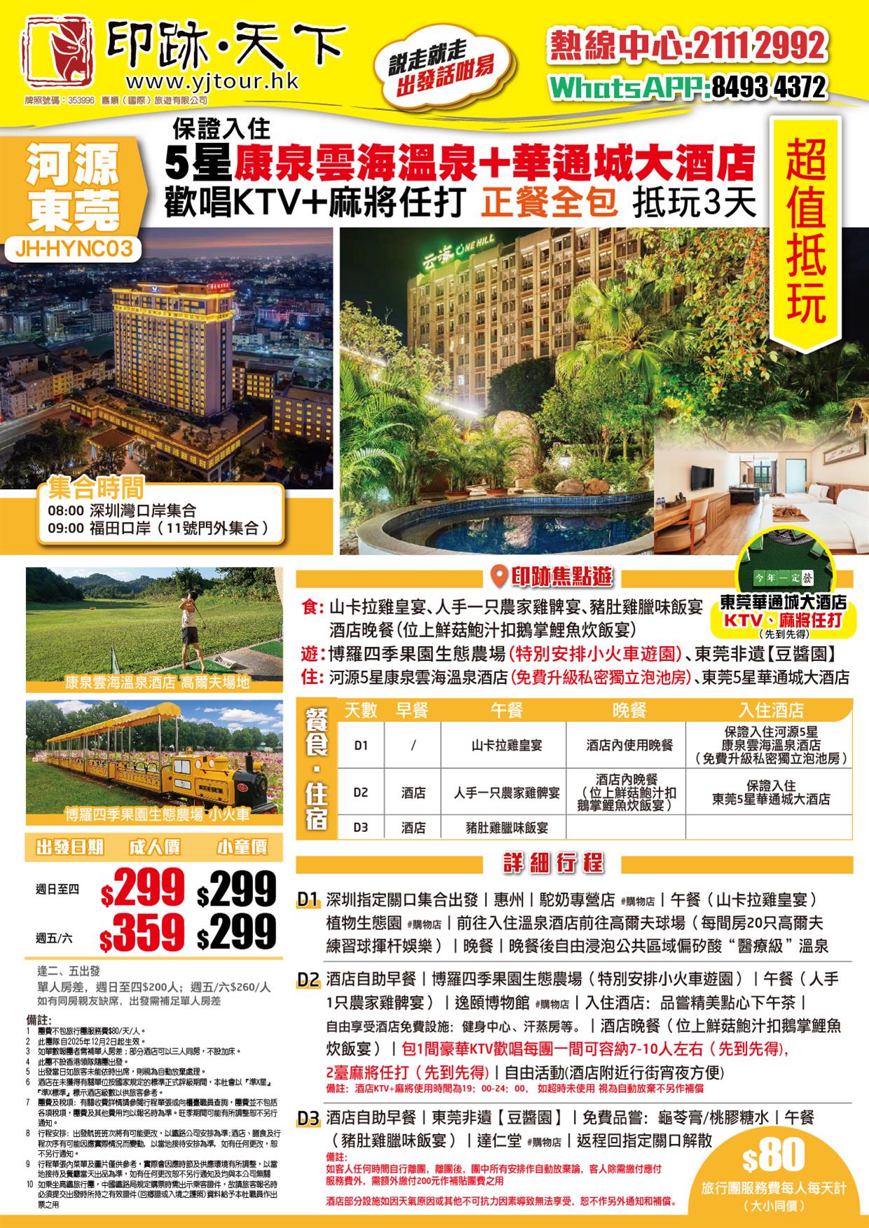 河源東莞 入住五星【康泉雲海溫泉+華通城大酒店】歡唱KTV+麻將任打 正餐全包 抵玩 3天