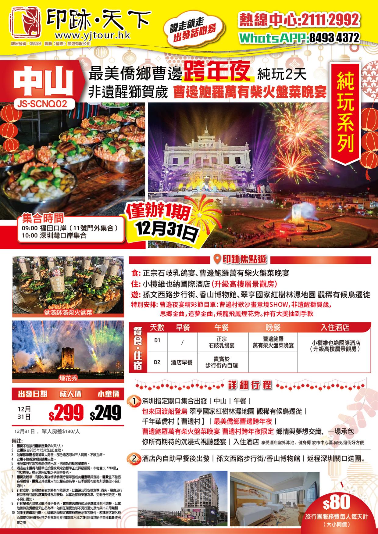 中山 最美僑鄉曹邊跨年夜 鮑羅萬有柴火盤菜晚宴 入住維也納國際酒店(升級高樓層景觀房)純玩2天