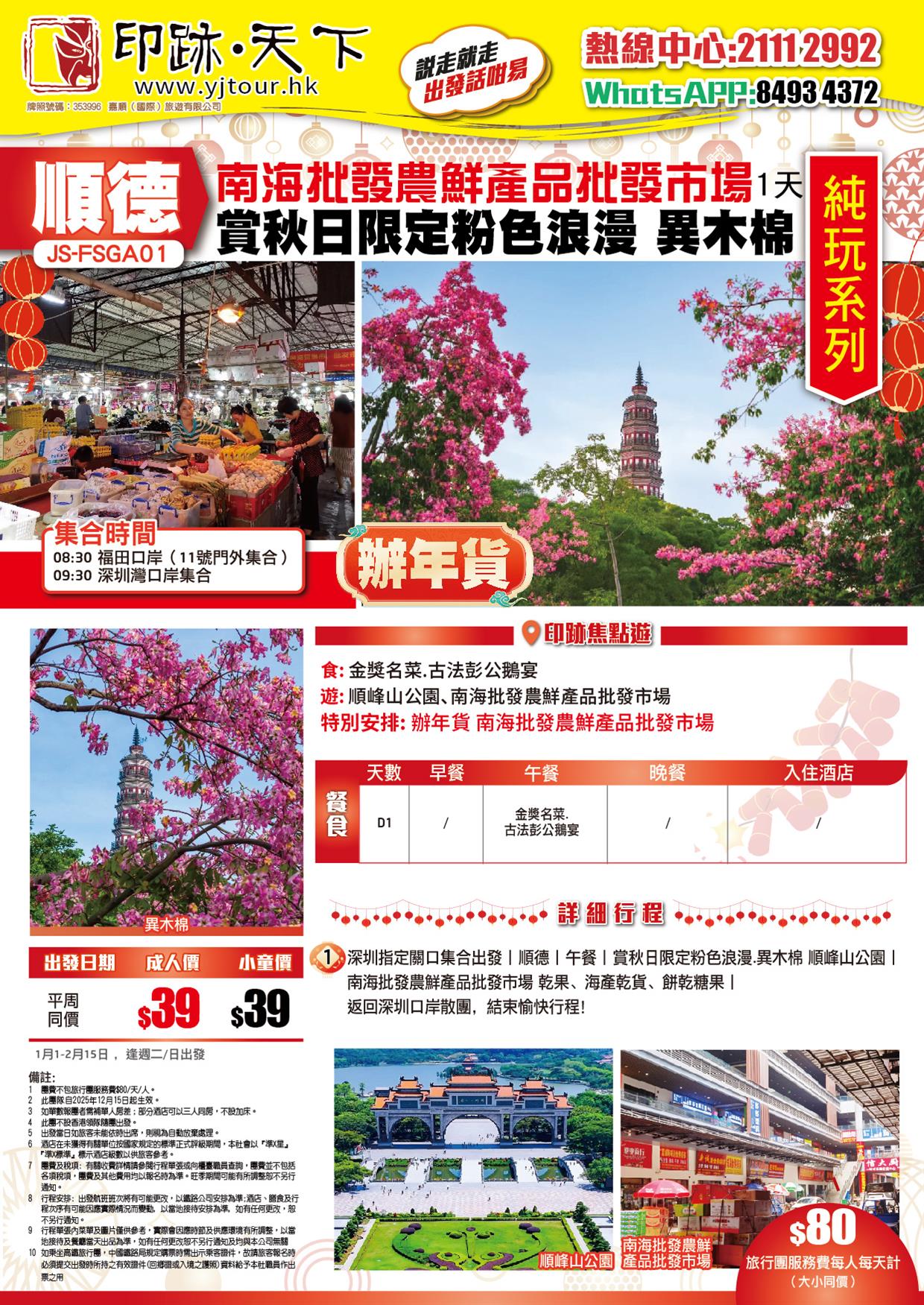 【辦年貨】顺德 新春辦年貨:南海批發農鮮產品批發市場觀賞秋日限定粉色浪漫.異木棉 純玩1天