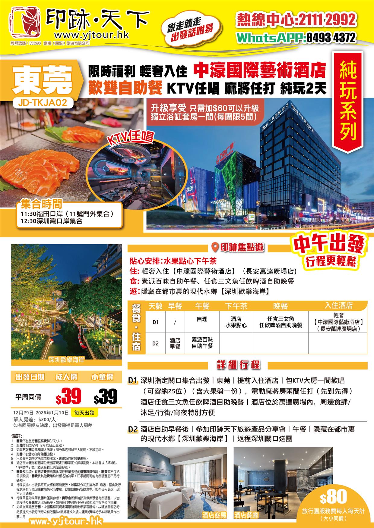 會員專享 東莞 限時福利 輕奢入住【中濠國際藝術酒店】歎雙自助餐 KTV任唱 麻將任打 純玩2天