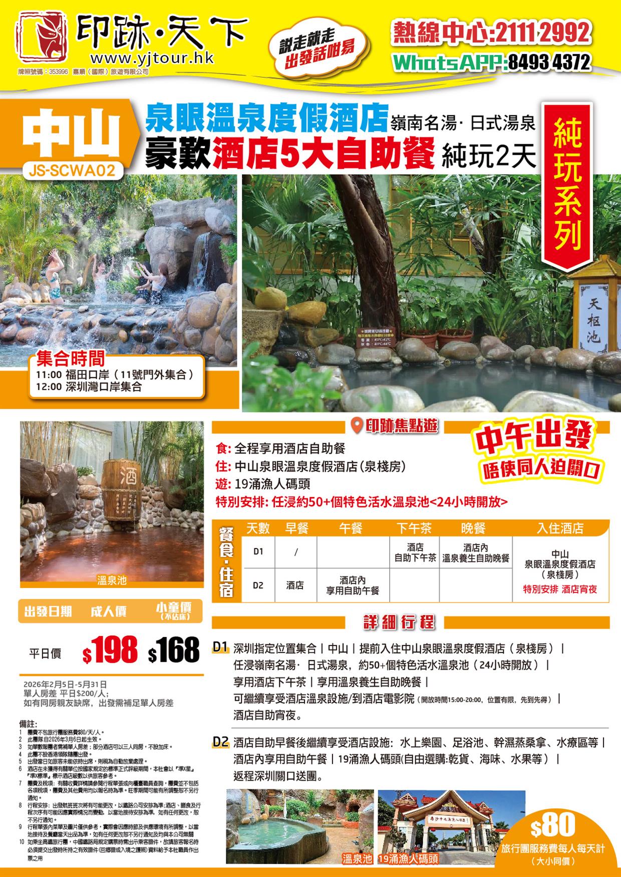 中山 嶺南名湯·日式湯泉【中山泉眼溫泉度假酒店】歎酒店<早中晚+宵夜+下午茶>5大自助餐 純玩2天