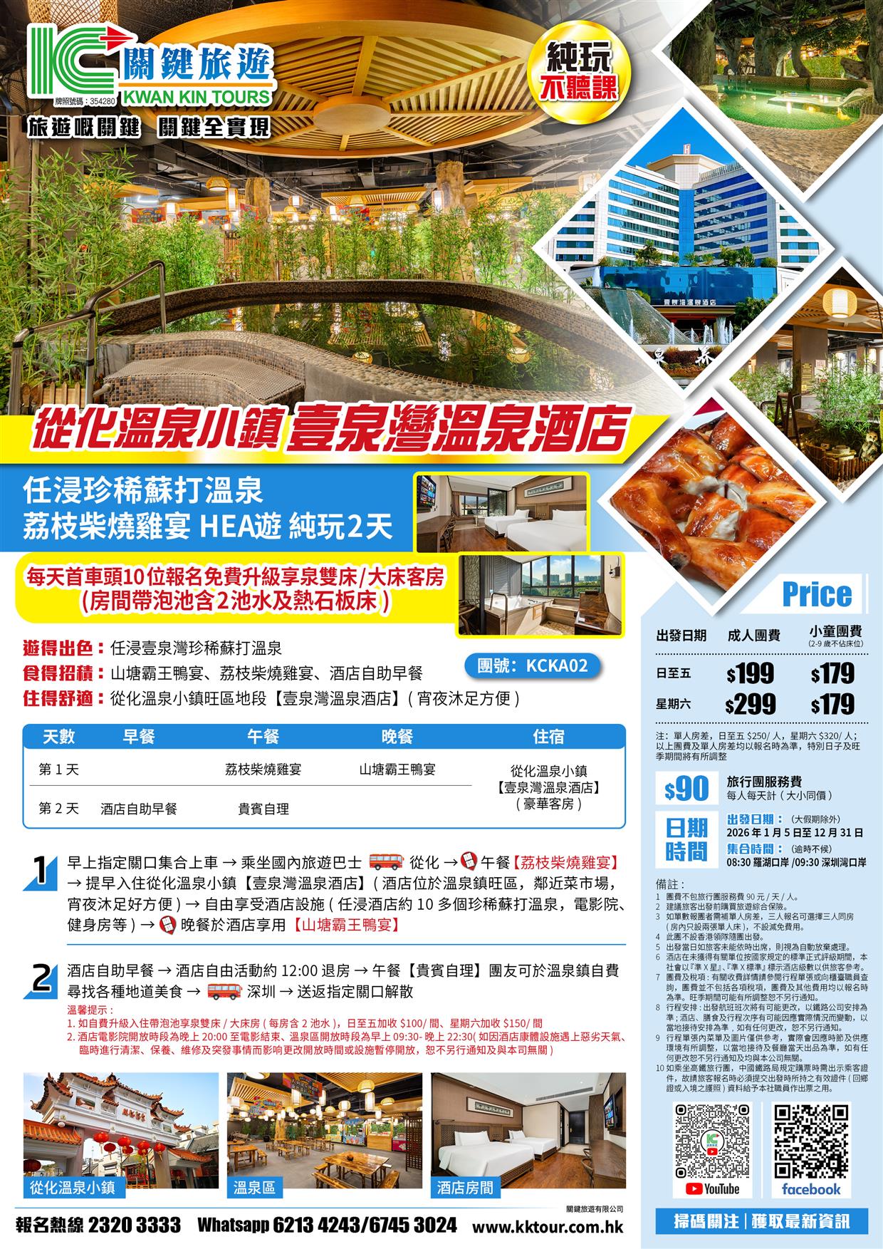每天首車頭10位報名免費升級享泉雙床/大床客房(房間帶泡池含2池水及熱石板床)