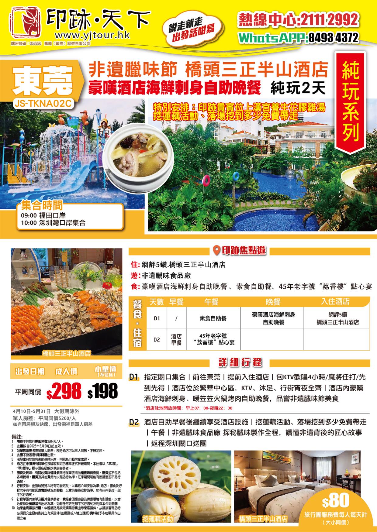 東莞 非遺臘味節 網評5鑽.橋頭三正半山酒店 豪嘆酒店海鮮刺身自助晚餐 純玩2天