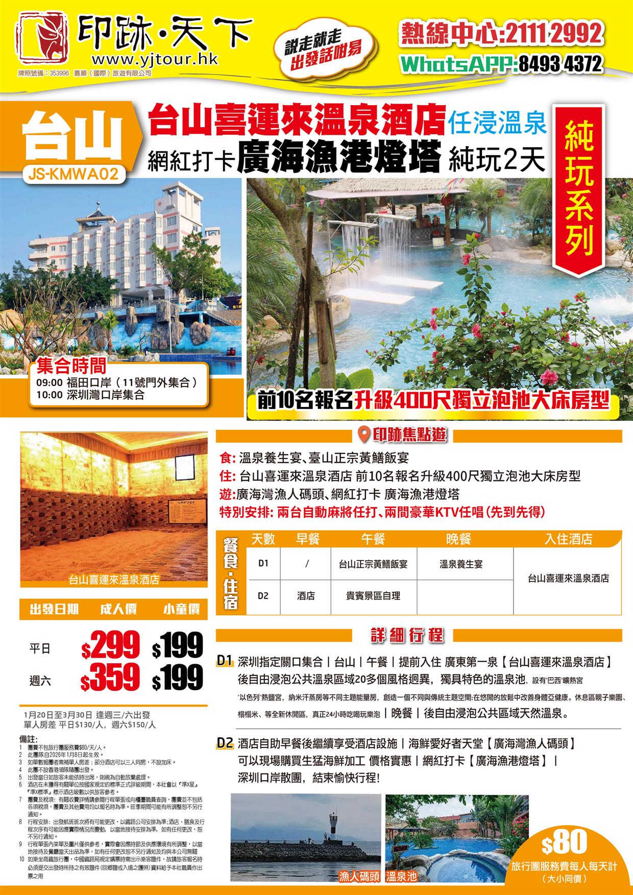 江門 臺山喜運來溫泉酒店 前10名報名升級400尺獨立泡池大床房型 純玩2天