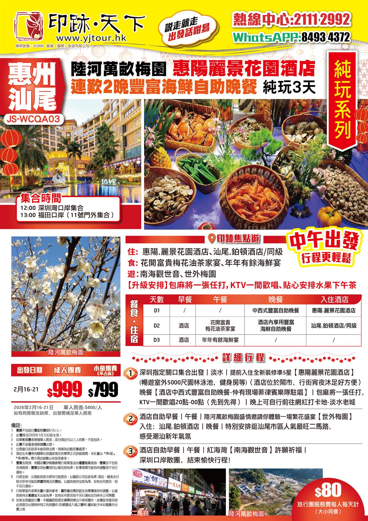 汕尾 新年加班線 陸河萬畝梅園 惠陽麗景花園酒店酒店 連歎兩晚 豐富海鮮自助晚餐 純玩3天