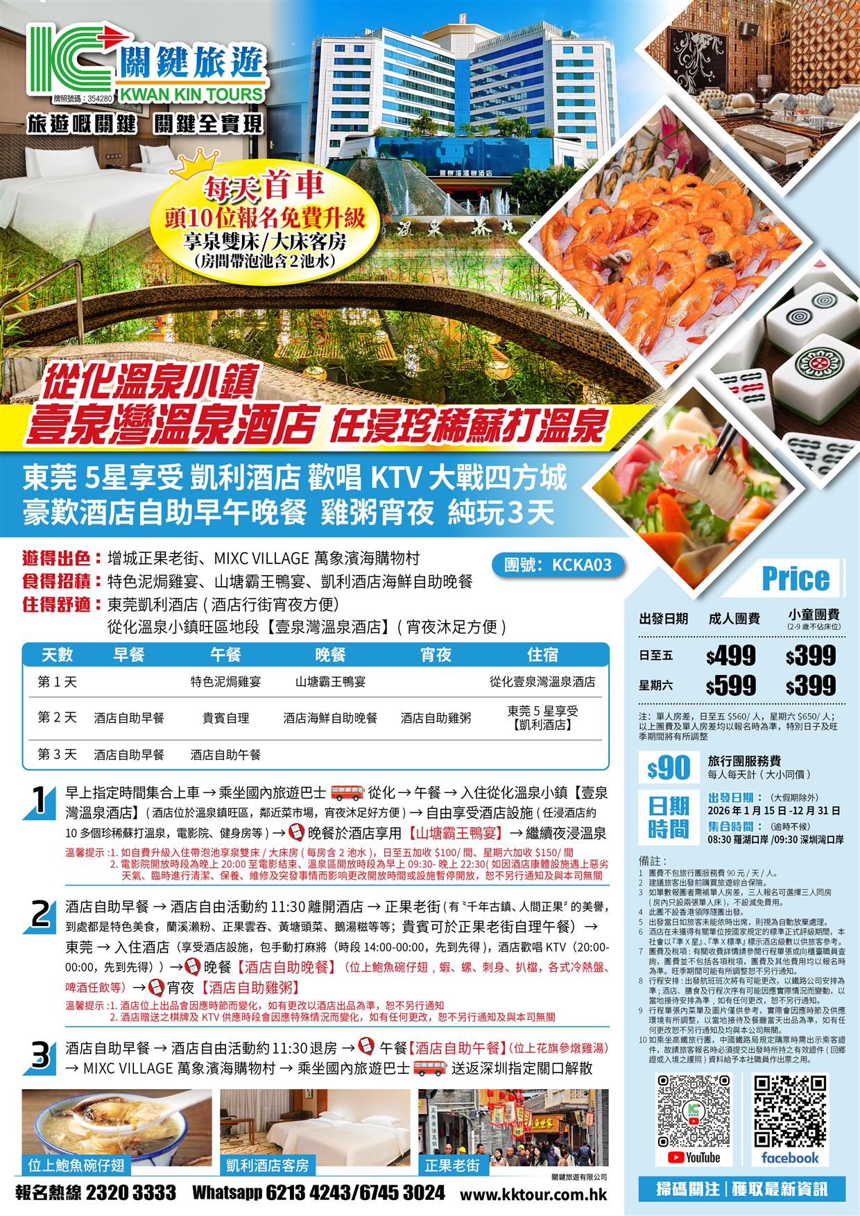 從化壹泉灣溫泉酒店 任浸珍稀蘇打溫泉、東莞凱利酒店 歎酒店自助早午晚餐、雞粥宵夜純玩3天