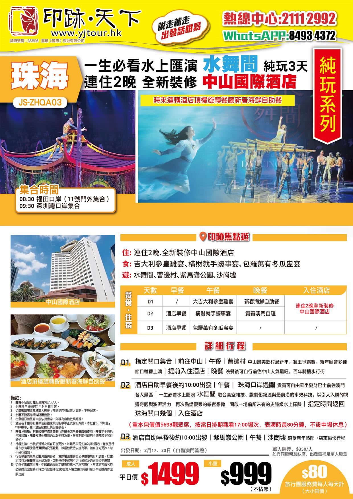 一生必看水上匯演【水舞間】 時來運轉酒店頂樓旋轉餐廳新春海鮮自助餐 連住2晚中山國際酒店純玩3天