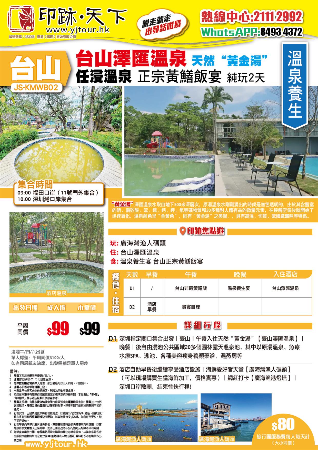 江門台山 天然【黃金湯】臺山澤匯溫泉 台山正宗黃鱔飯宴 純玩2天