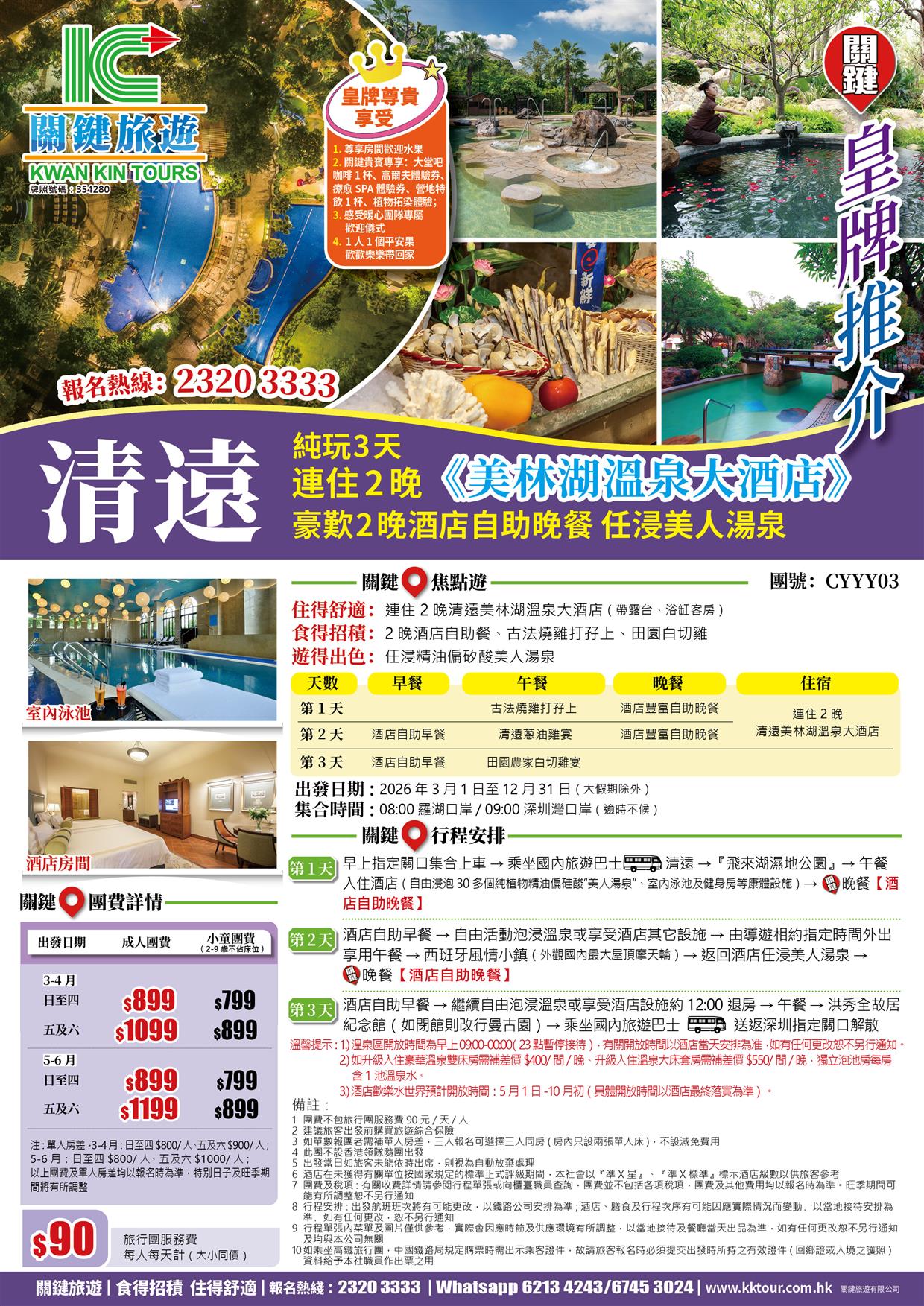連住2晚《清遠美林湖溫泉大酒店》 任浸美人湯泉 歎酒店自助餐 純玩3天